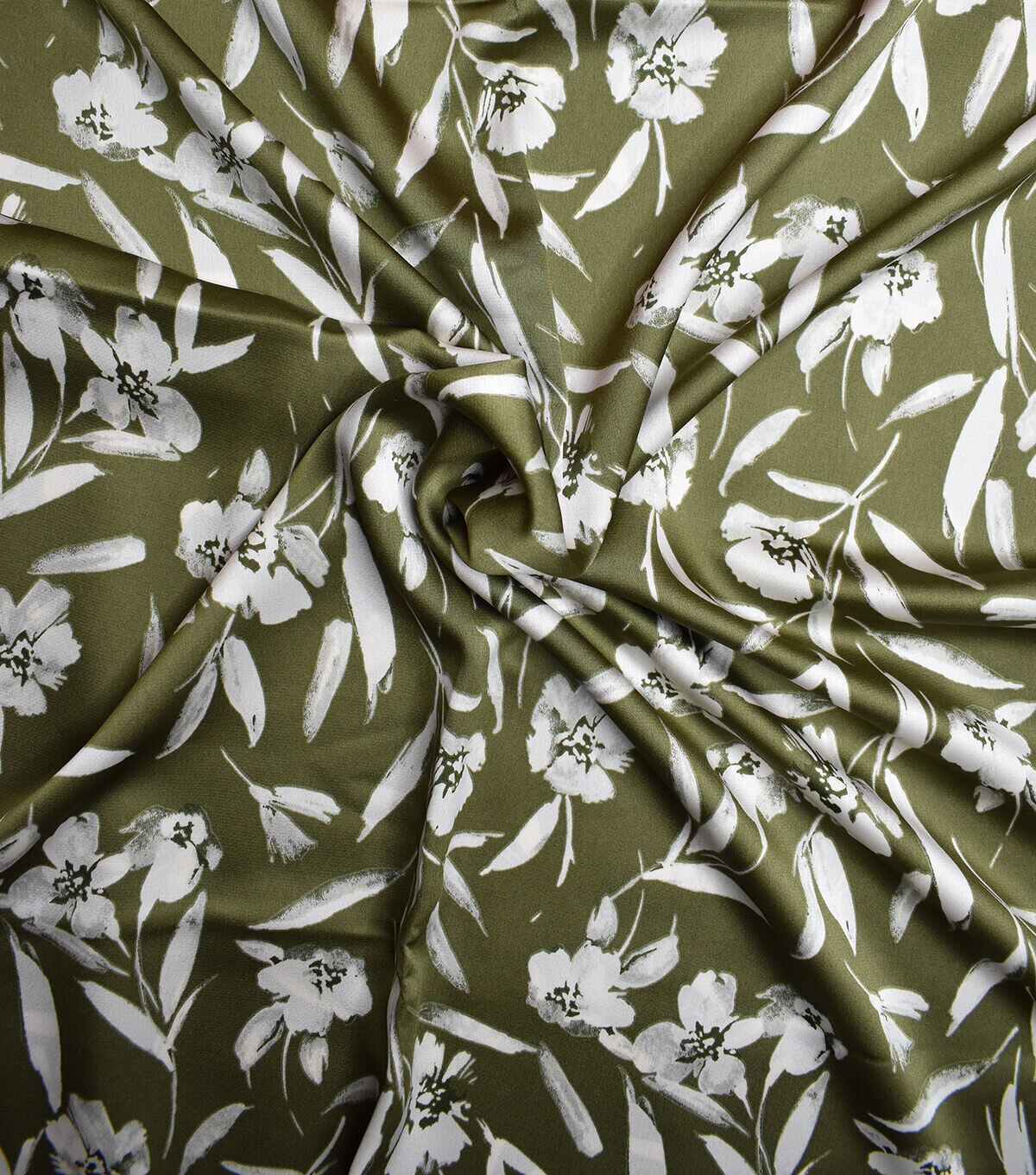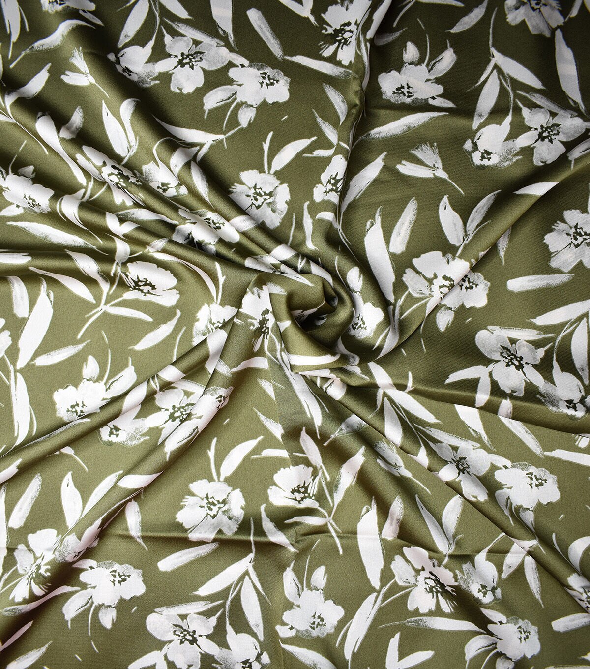• Light Green Large Floral Charmuse Silky Prints Fabric