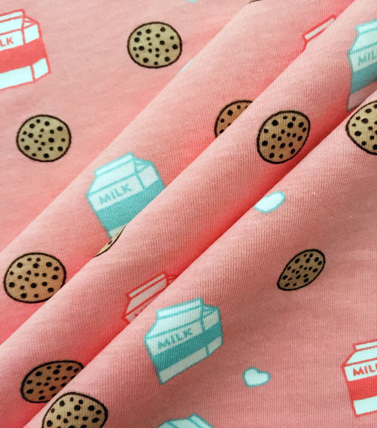 The power of cotton is an almighty force for kids attire. Our cotton jersey knit is a thinner fabric that's durable and naturally comfortable. Plus with breathability, children's tops and dresses have total freedom of movement during play time. Choose designs like this playful milk and cookies pattern, and you have a loving sewing project for awesome practicality and personality.