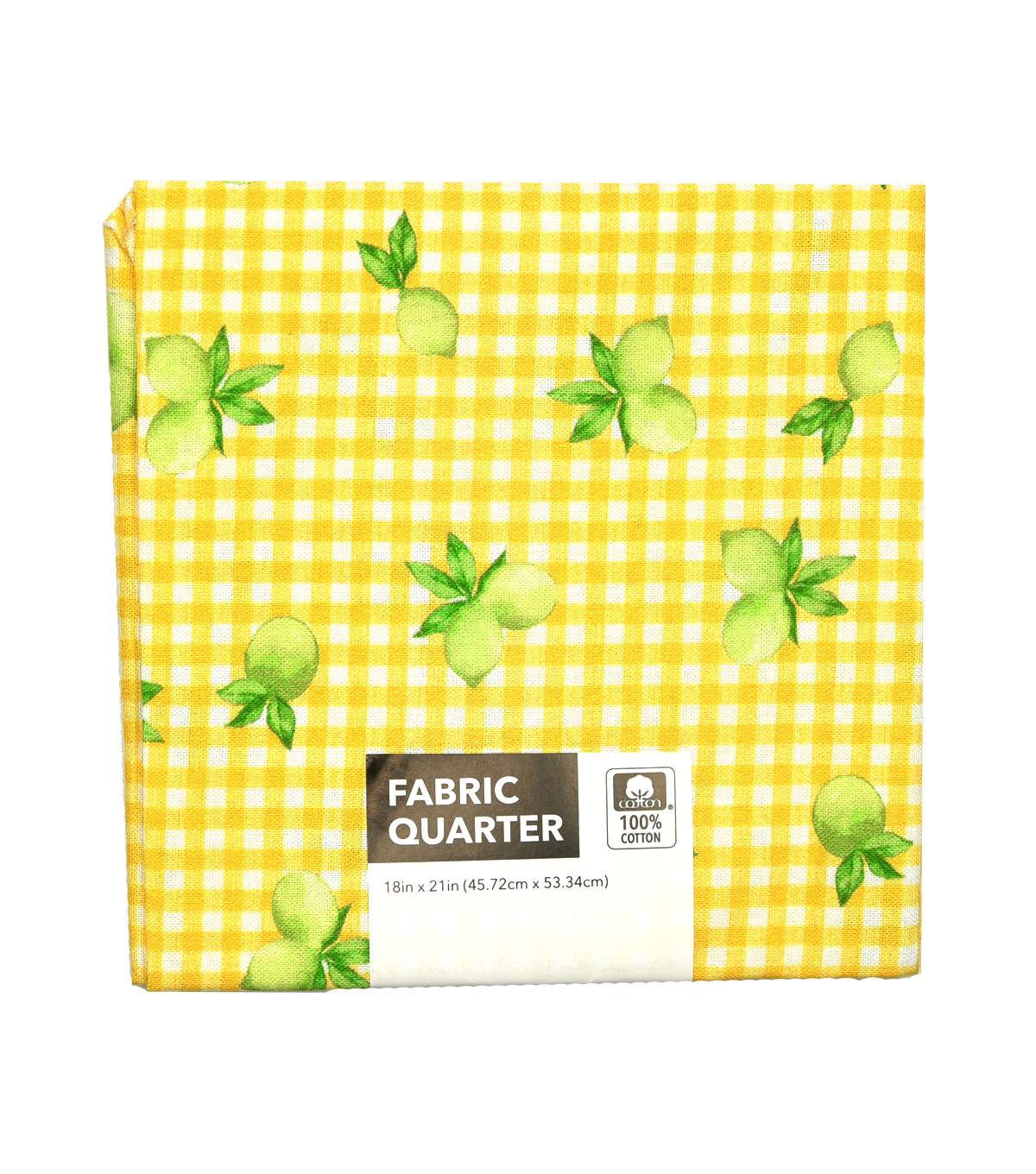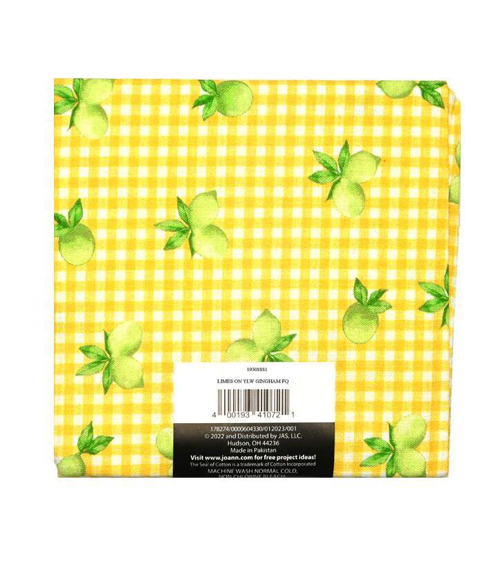 Limes On Yellow Gingham Cotton Fabric Quarter