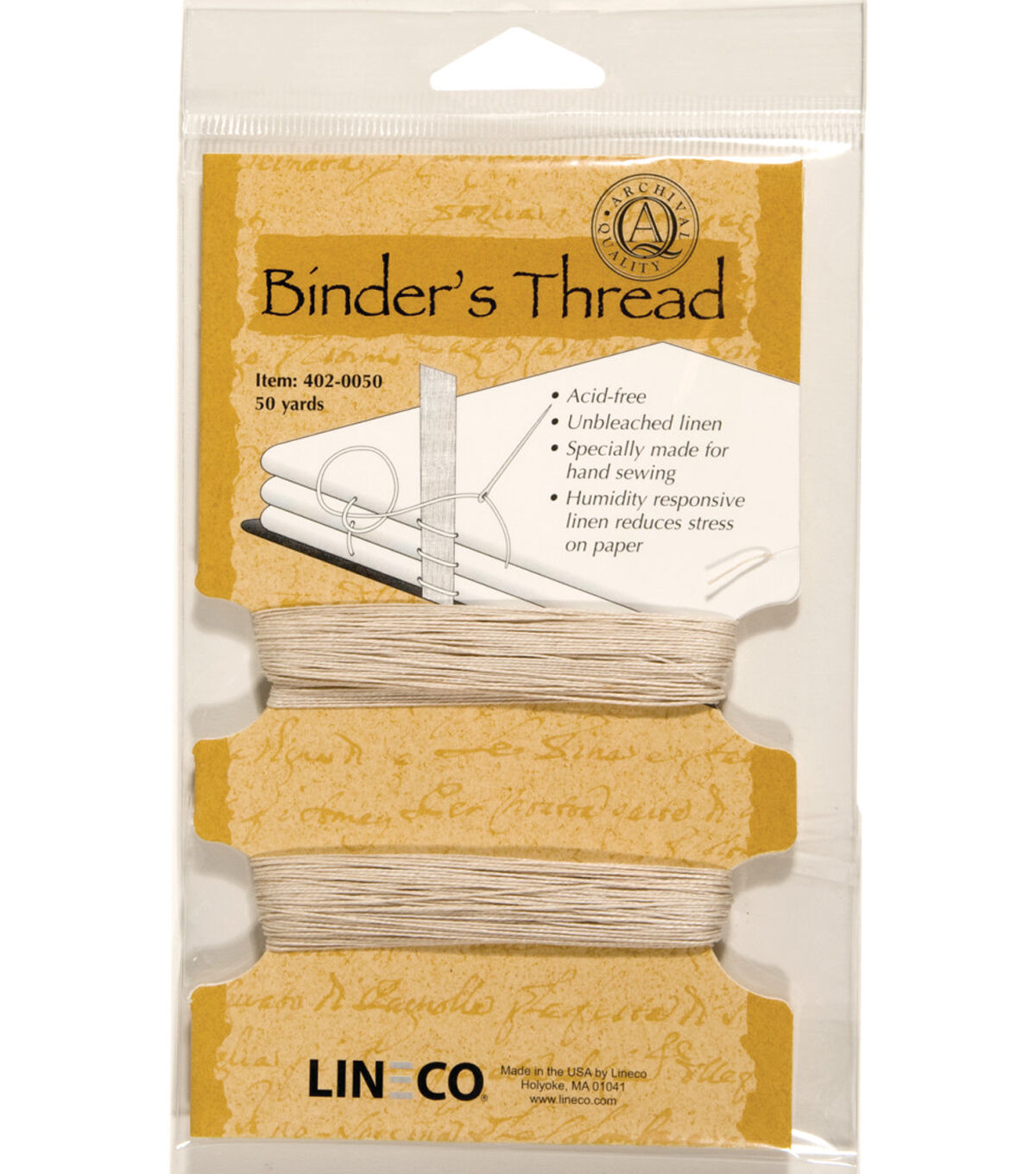 When binding a book, you need strong thread to sew the groups of pages together into groups called signatures. This strong linen thread ensures that your handmade book withstands years of appreciation and use! Specially designed for hand sewing, it expands with moisture to prevent tears or ripples in the paper.