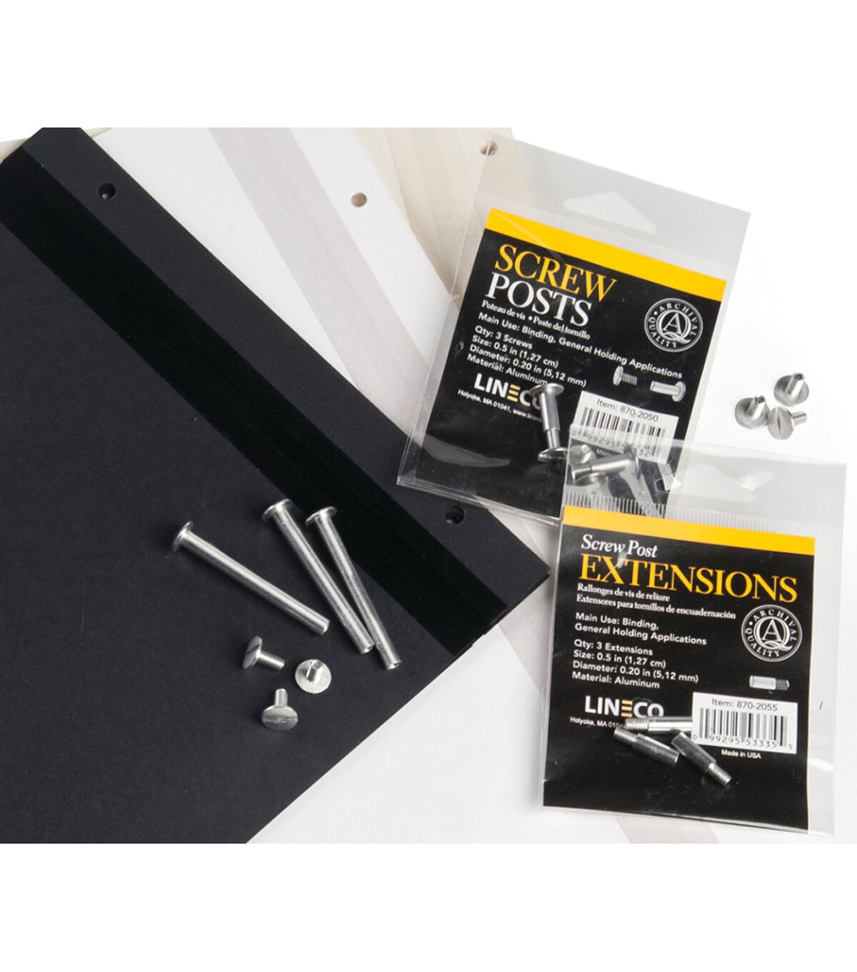 These binding posts, also called screw posts, are ideal for use in binding photo albums, swatch books, sample books, architectural and engineering drawings, menus, leather goods and other materials. Extensions allow you to bind more material as needed.