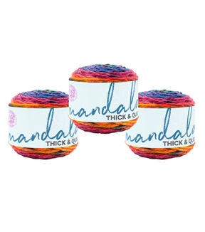 Mandala yarns have a cult following with a Facebook fan club of over 72,000 followers. The yarns are beloved for their softness, unique colorations, and superior quality: crafters collect every color. Lion Brand worked tirelessly to create Mandala Thick & Quick, a bulky version of the original that didn’t compromise on color or softness, and we finally succeeded. Mandala Thick & Quick has brand new, unexpected color combinations that crafters have come to expect from the Mandala name, with subtle color changes and a superior hand.