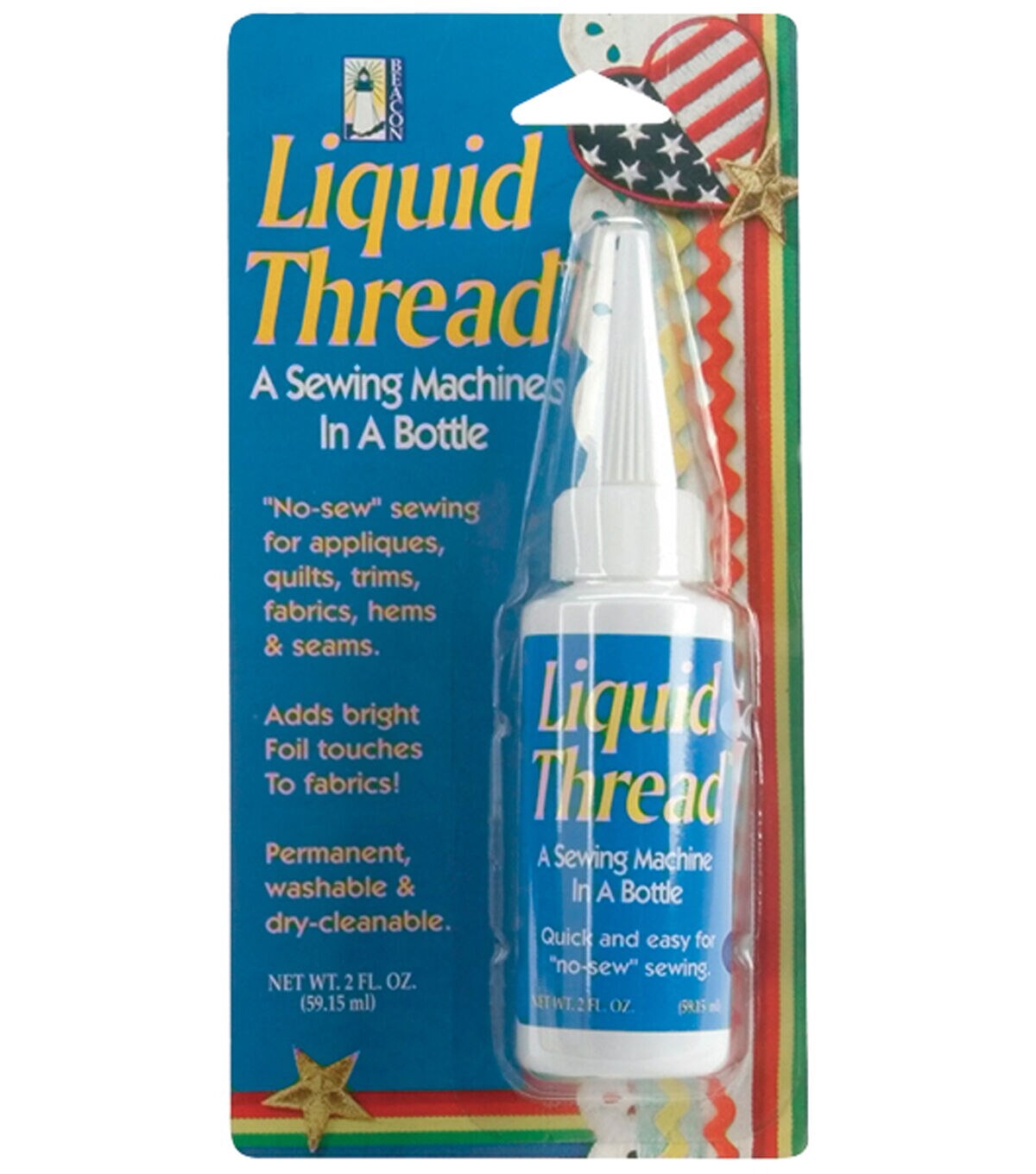 BEACON-Liquid Thread. A sewing machine in a bottle. No Sew sewing for appliques, quilts, trims, fabrics, hems and seams. Permanent, washable and dry cleanable and non toxic. 2 fluid ounces.