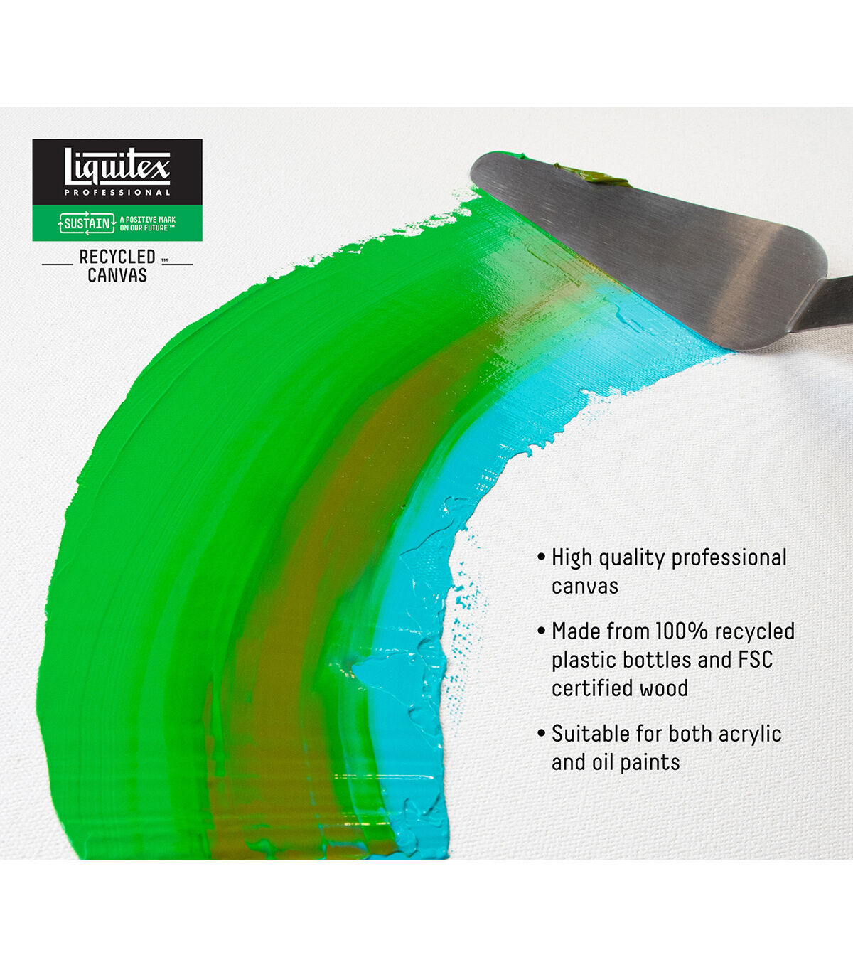 Want to reduce your environmental impact? Switch to new Liquitex Professional Recycled Plastic Canvas. High quality canvas woven from thread made from 100% recycled plastic bottles. Tested by artists for quality and performance. Suitable for both acrylic and oil paint.