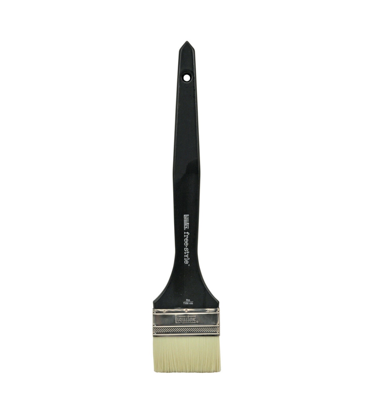 Ideal for large acrylic paintings and murals, this brush features a rustproof ferrule for durability and a non-slip grip handle design that provides extra comfort when holding the brush for long periods of time, allowing you to truly get lost in the process of creating. The ferrule is screwed and glued to handle for added durability, and the handle has a convenient hanging hole for easy organization in the studio. The size is printed on end of brush for easy identification when switching from brush to brush - no mix ups!