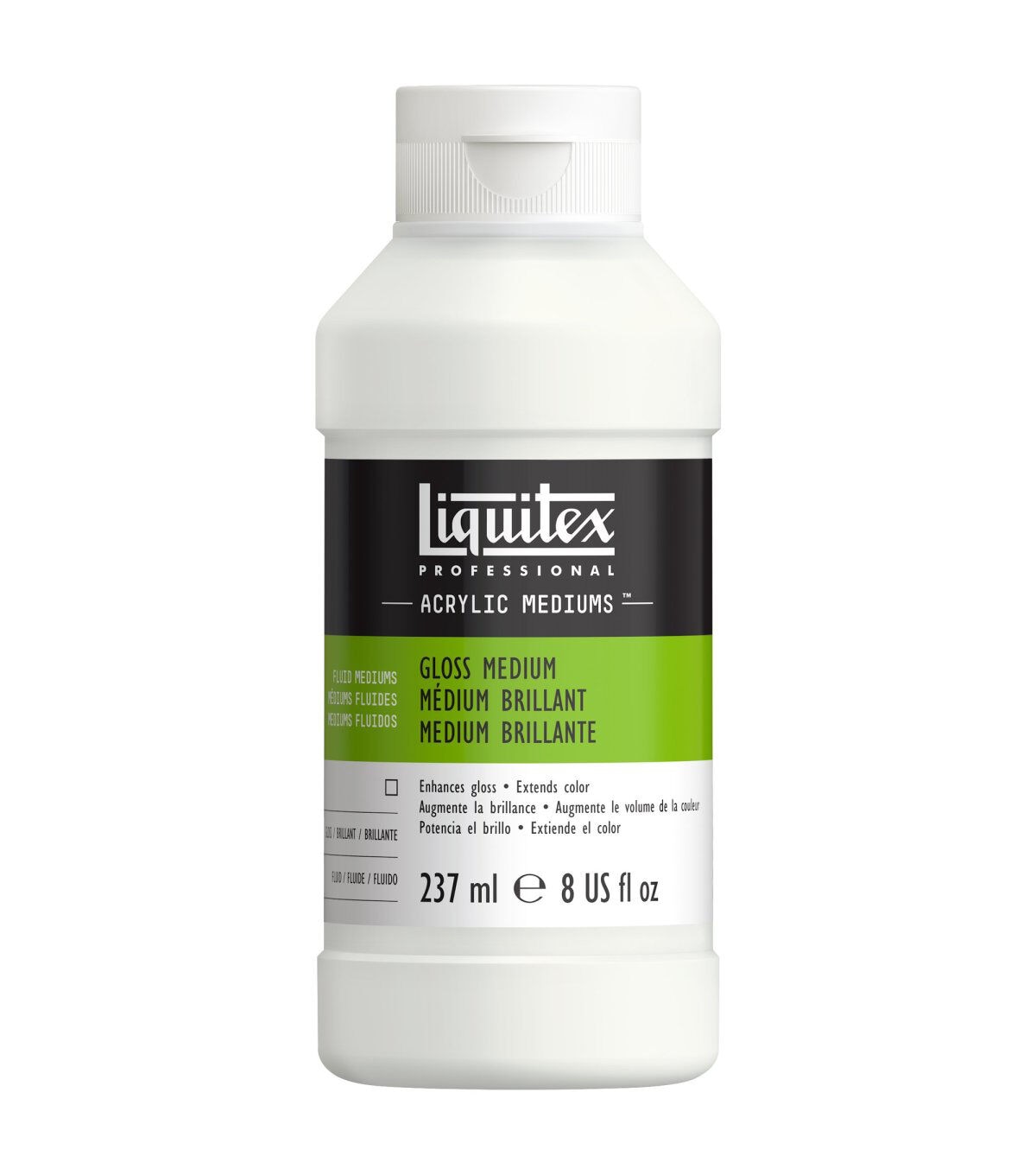 Liquitex Gloss Medium & Varnish enhances depth of color and increases transparency, gloss, and flow. Can also be used as a final, non-removable varnish for acrylic paintings. Features excellent binder and adhesion qualities, dries clear and glossy, and is permanent, non-yellowing, flexible, and water resistant when dry. Mix with any acrylic color or apply over a finished painting. Can also be thinned by adding up to 25% water. Use it for glazing, as a fixative, collage adhesive, varnish, binder, or transfer medium. This package contains 8oz/237mL of Gloss Medium & Varnish.