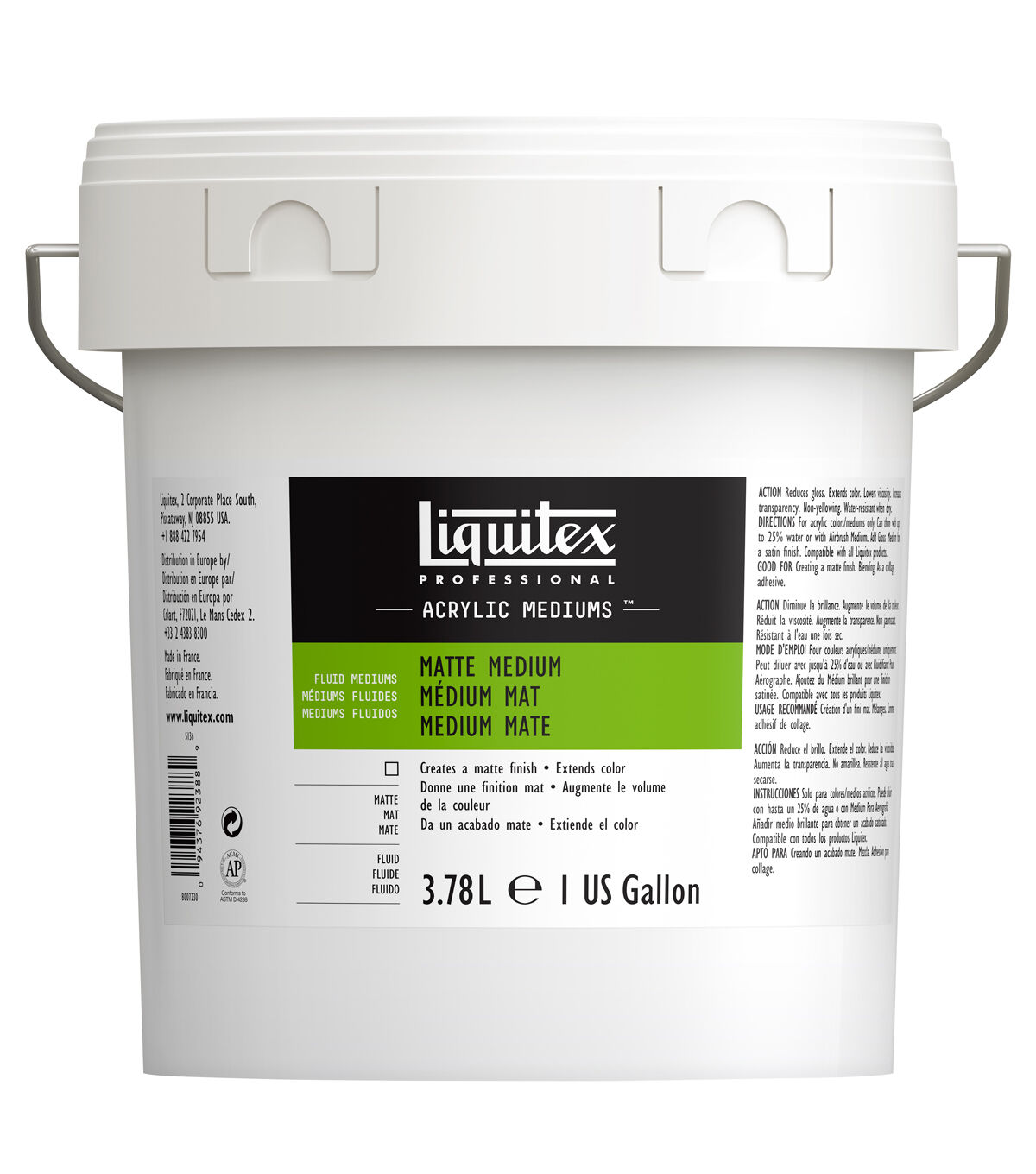 Matte Medium extends your acrylic color and creates a uniform matte finish. Mix into your acrylic color for a flat matte finish, or combine with gloss medium & varnish to vary the paint sheen from matte to satin. It can also be used as an adhesive for collage and mixed media techniques.