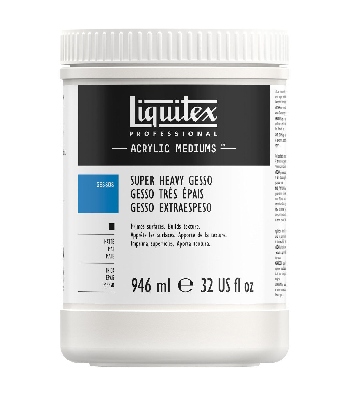 This impasto, titanium white gesso has the ability to hold sculptural shape while providing all the attributes of traditional acrylic gesso for priming your surfaces. It is excellent for thick and sculptural application with a knife or brush, allowing you to create dimension and texture that you can layer acrylic color onto.