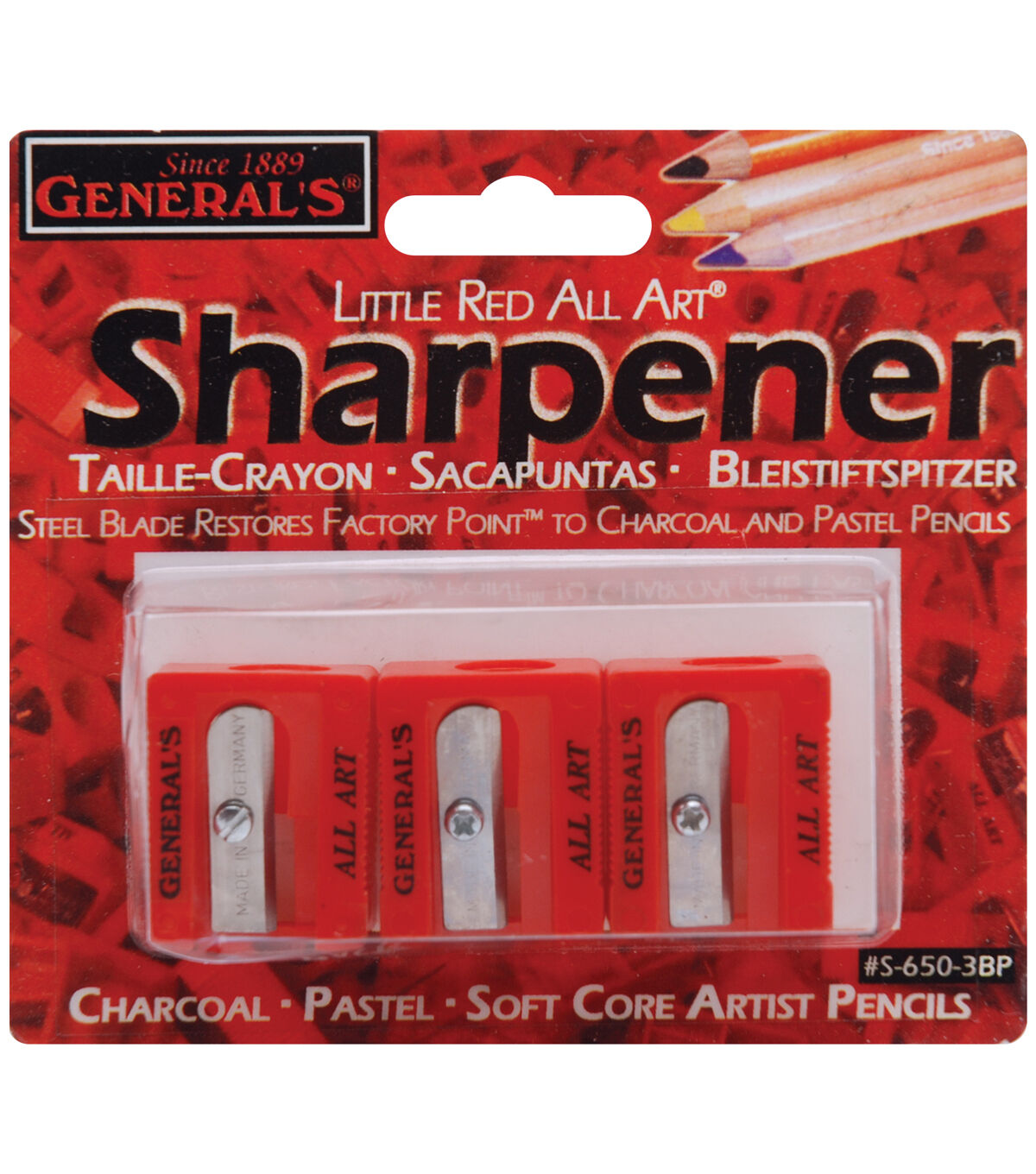 Restore that factory sharp point you all of your charcoal; pastel and soft core artist pencils. This package contains three little red sharpeners