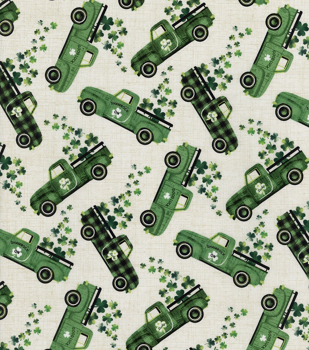 Lucky Green Trucks St. Patrick's Day Cotton Fabric