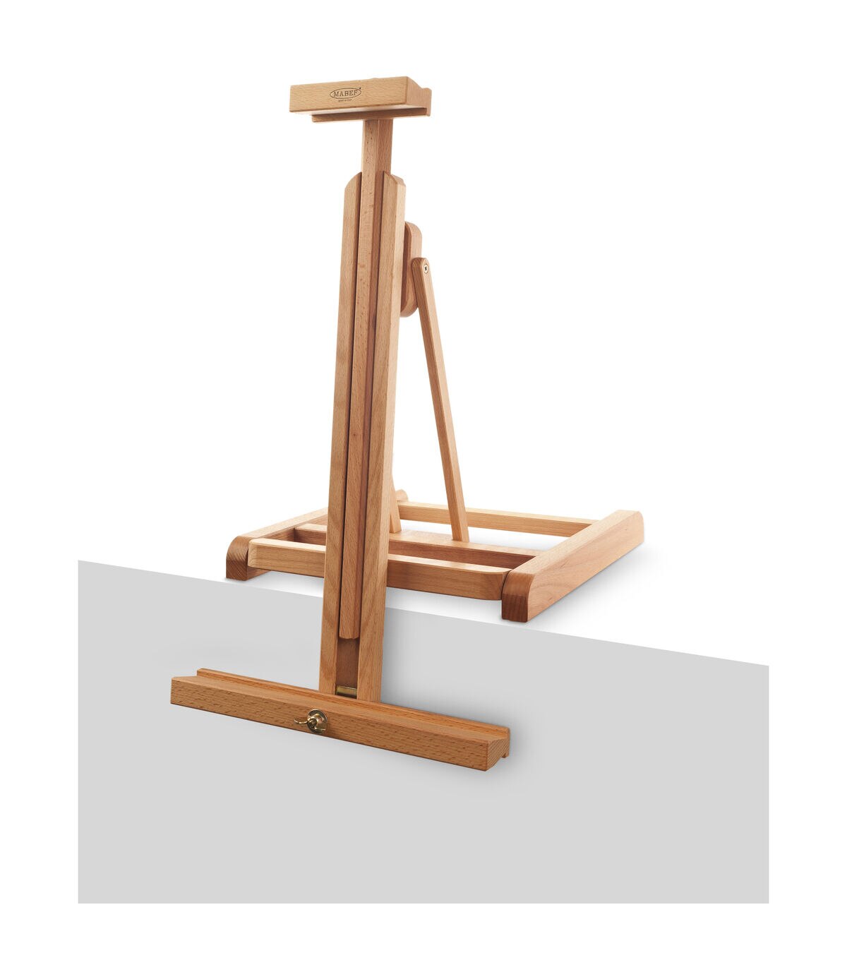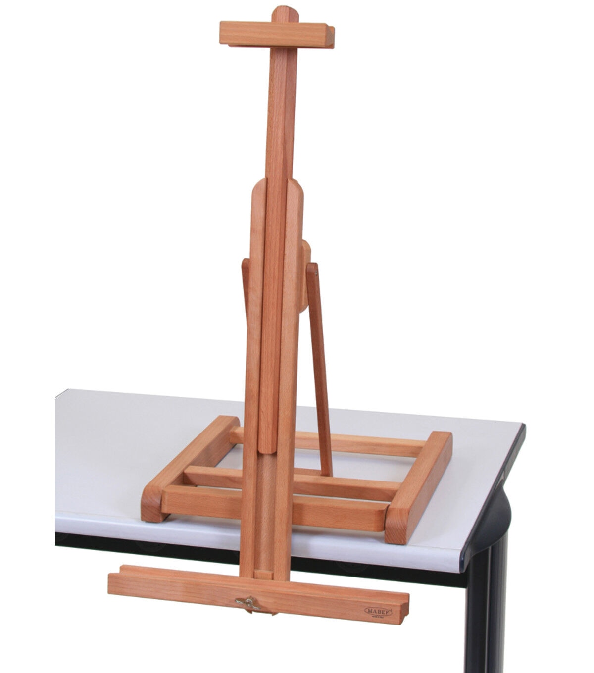 This space-saving table top easel features an adjustable canvas holder that can go below the table level to accommodate a wide range of canvas sizes. The canvas holder can be angled from a vertical position for oil and acrylic painting to a horizontal position for watercolors. Ideal for multi-media artists or creatives with tight or variable studio spaces. The easel base measures 14-1/8"wide x 15"deep and includes non-slip rubberized feet.