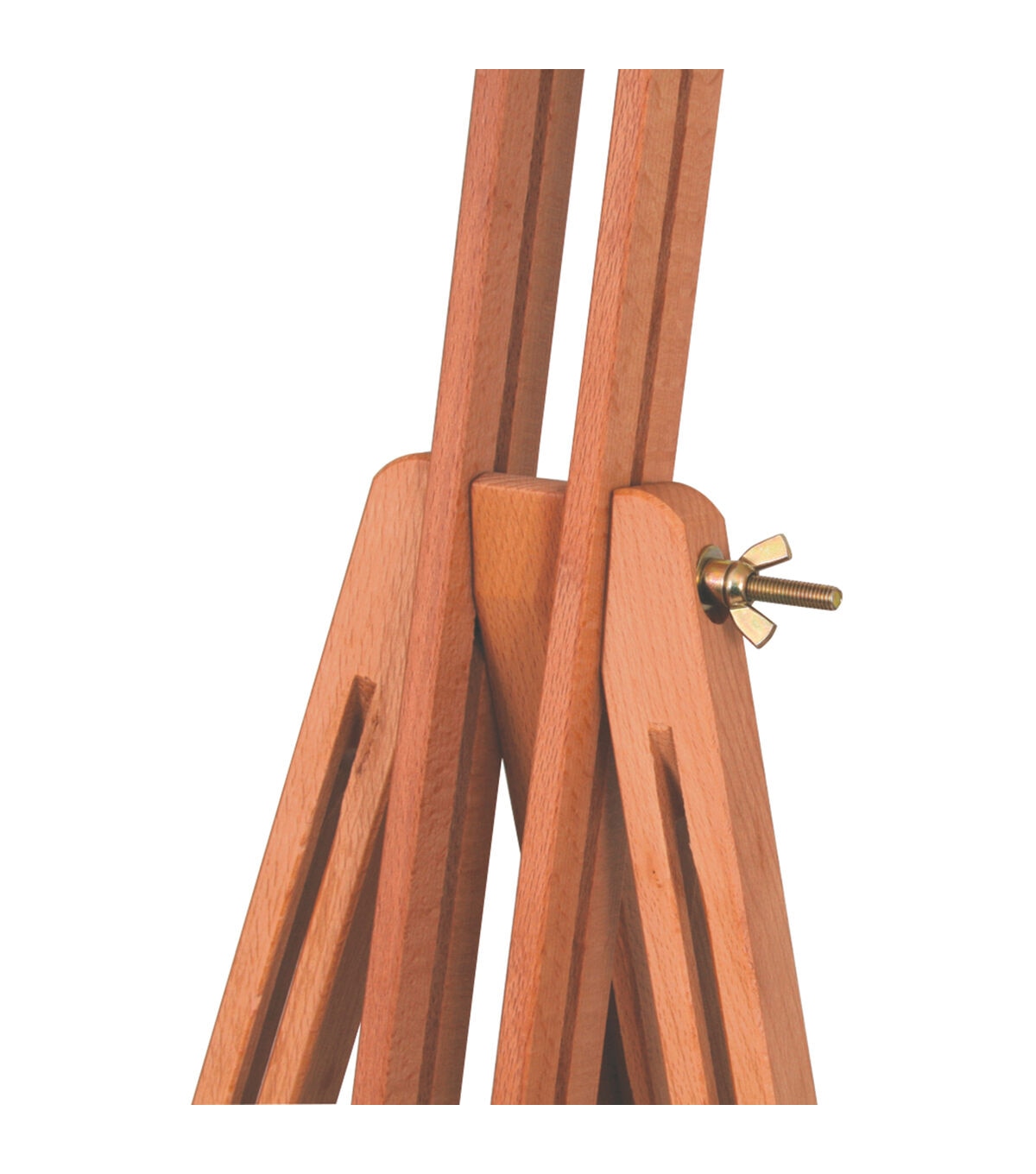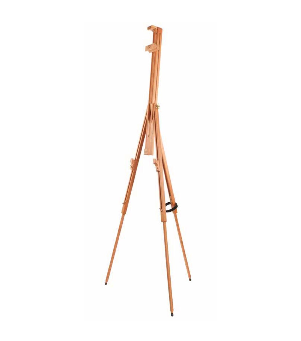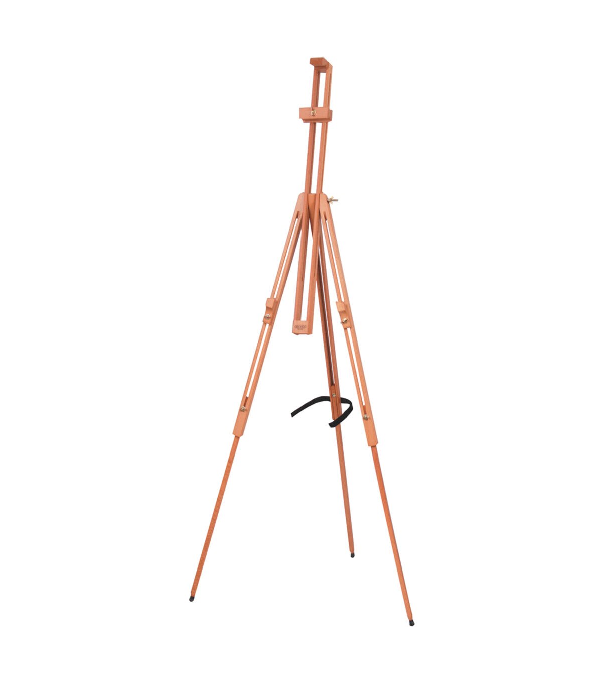 Made of high quality, oiled beech wood, this simplified MABEF Value Folding Field Easel comes with a Velcro strap instead of leather. It features a pivoting canvas holder that can be adjusted to any angle, from vertical to horizontal, for oil or watercolor painting. This economy version of the MBM-29 Basic Folding Easel accommodates a canvas up to 45 inches high.