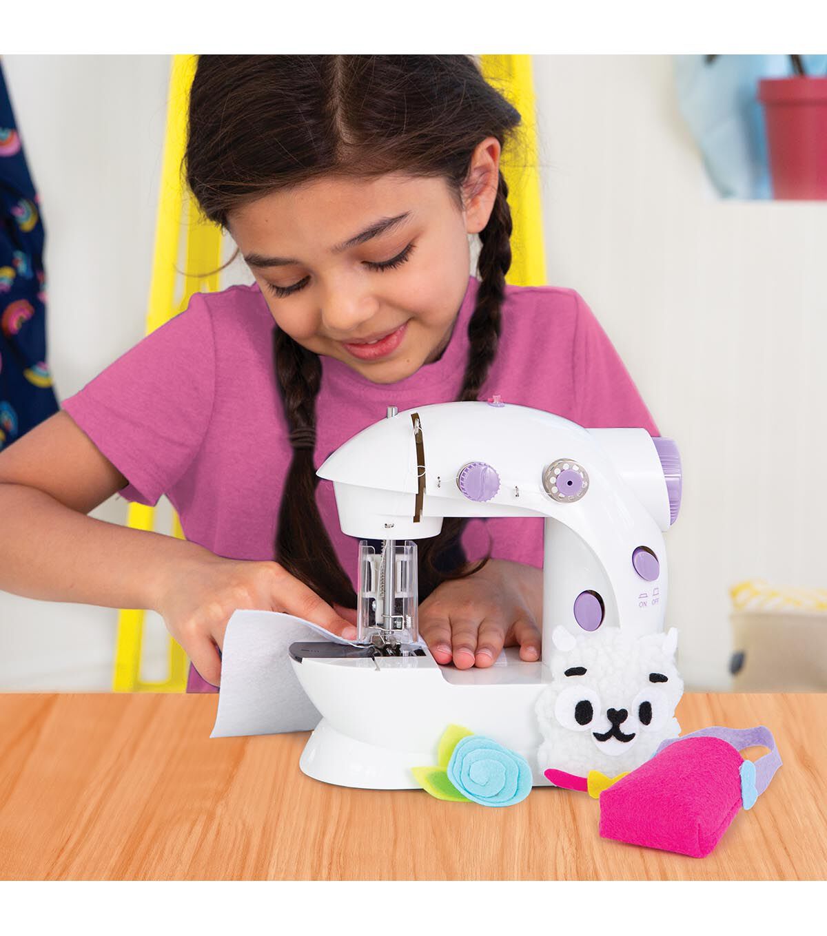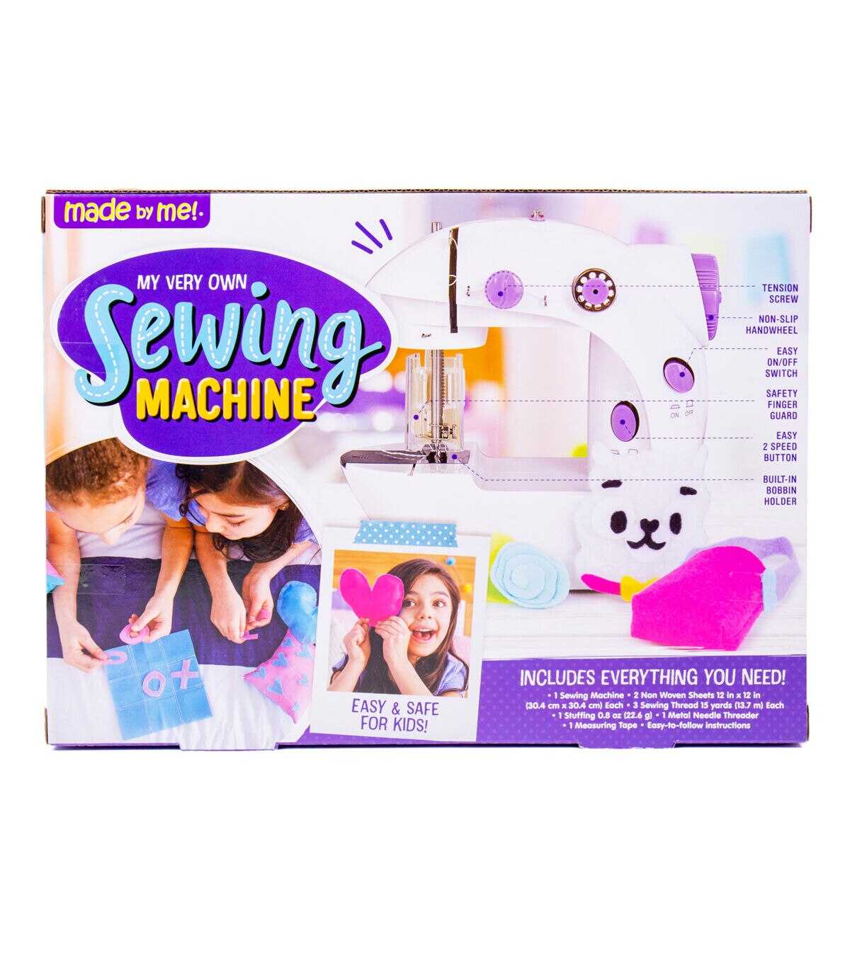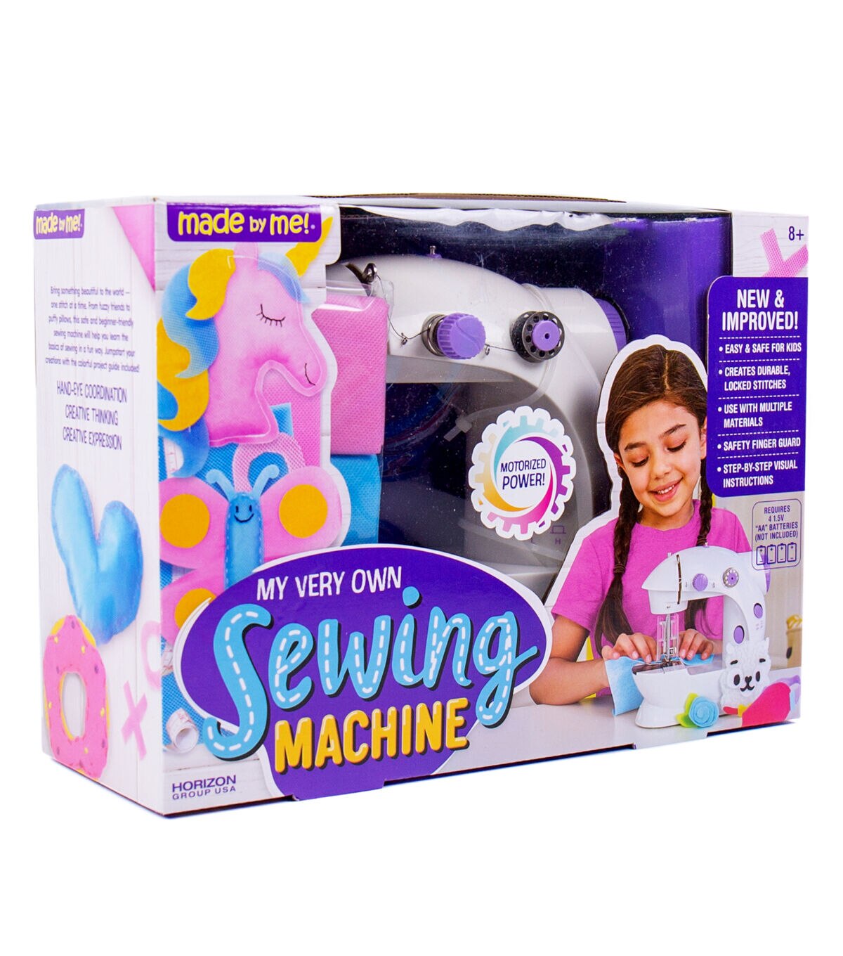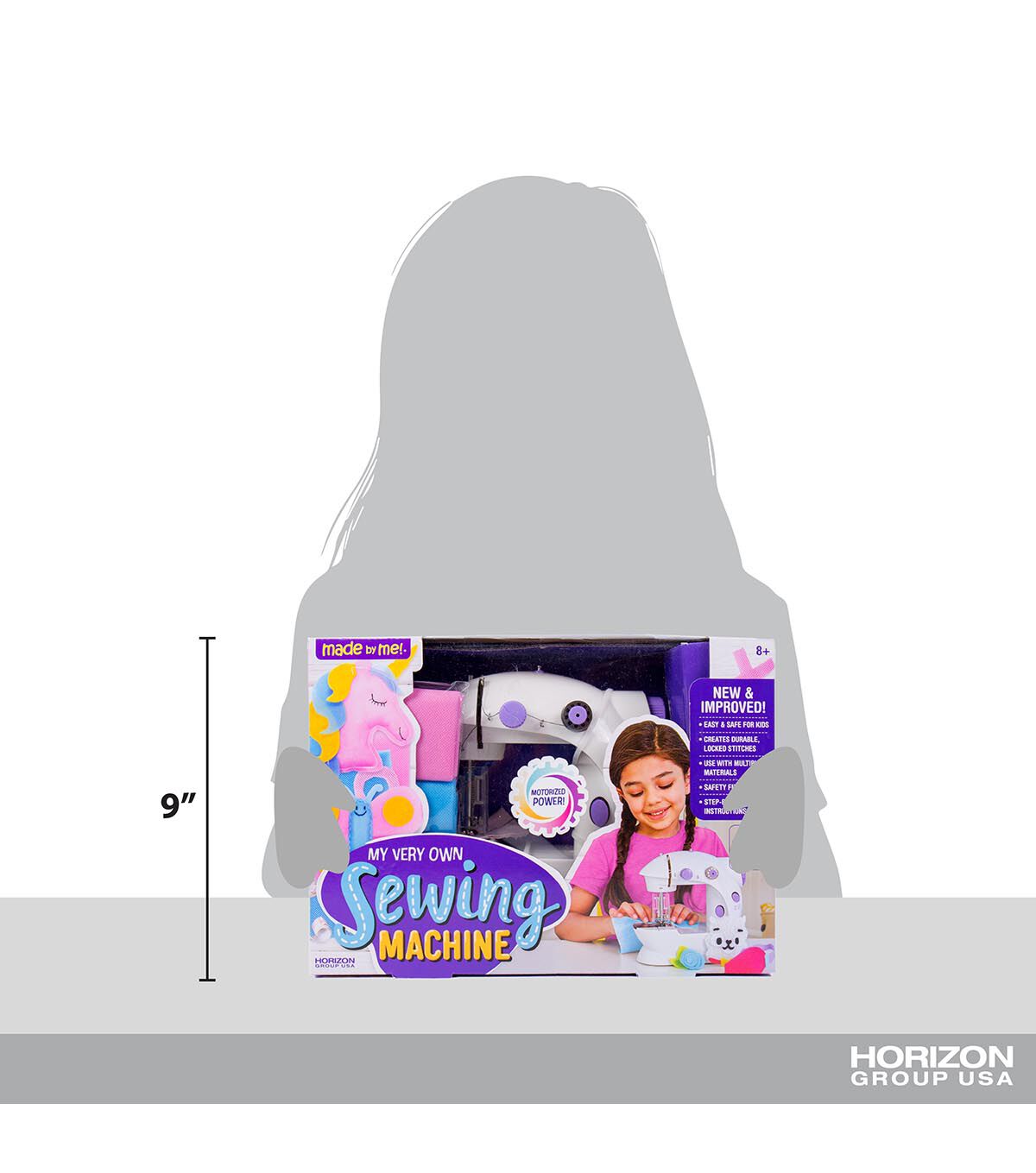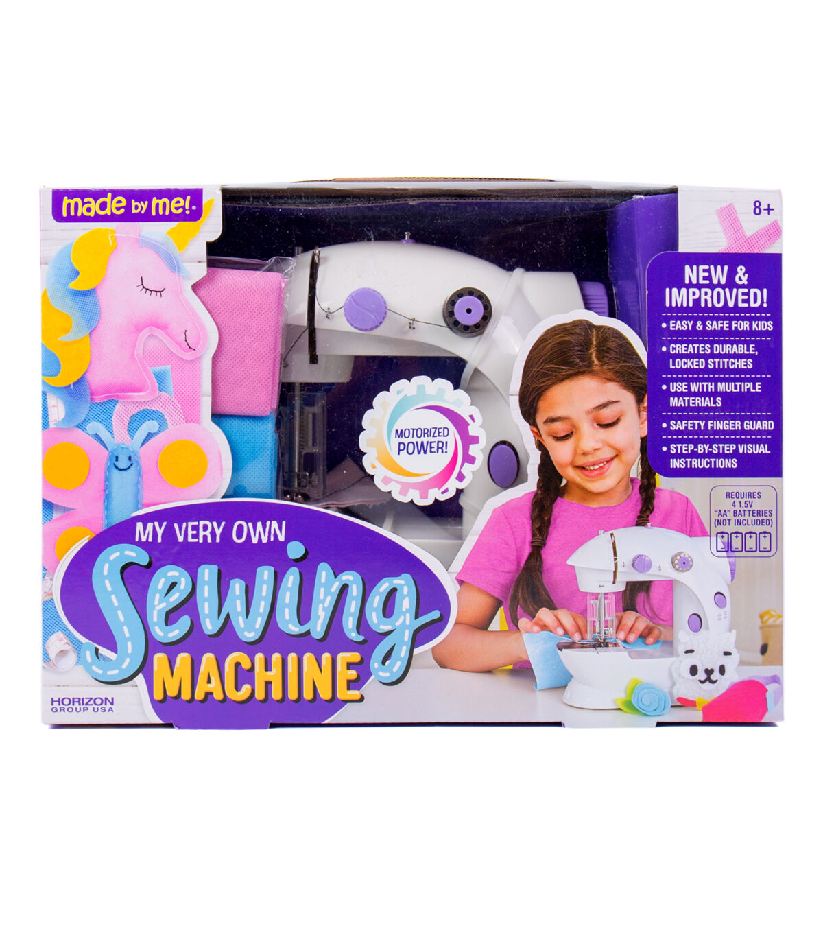 Discover how fun and easy it is to master the art of sewing with the new and improved Made By Me! My Very Own Sewing Machine! Complete with a battery-powered sewing machine for kids, a metal needle threader, fiberfill, fabric sheets, measuring tape, and 3 spools of thread this upgraded machine makes it easy to introduce sewing to first-timers! This sewing machine comes pre-threaded and ready-to-use, so all you need to do is follow the fully-illustrated instructions to jump right in and start creating! Learn the basics, like setting up the bobbins, locking your stitches, and checking their quality. Then, use your machine to create tons of cool projects like a patchwork pillow, tic-tac-toe game, fabric bookmarks, and fuzzy creatures! Whether you use the included fabrics or some of your favorites from home, this set contains all the tools you need to become a sewing expert visit the Horizon Group USA website for project templates!