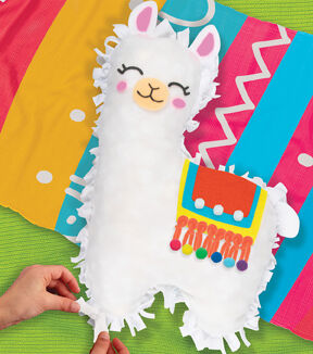 Ain’t no drama with the Made By Me Easy-to-Knot Squishy Llama! This one-of-a-kid DIY delight comes with everything you need to create your own slow-rise 17-inch plushie llama, all without sewing or cutting! Just knot, fill, and embellish — it’s a dream come true for both kids and adults. With no sharp needles or complex stitches involved, this set offers a stress-free crafting experience that’ll make everyone smile — it’s no prob-llama for even the littlest makers! The fabrics come pre-slitted, so creating your cuddly companion is as simple as lining them up and tying the knots! The slow-rise feature of the foam filling included creates a premium plush toy feel and a satisfyingly squishy texture that kids will love to squeeze and cuddle. After filling, make your llama even more snuggly with a pre-cut saddle blanket made from adhesive felt, adorn it with whimsical tassels and playful poms, then add facial features that are cute as a button! This easy-to-assemble no-sew pillow set is perfect for any llama lover ages 6 and up.
