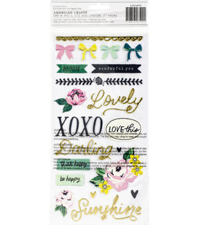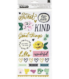 Add an elegant pop of color to your projects with Thickers phrases and icons! They're perfect for dressing up your cards, scrapbooks, home decor, and so much more. This package includes 70 Thickers in a variety of phrases and icon accents, some with a gold foil finish.