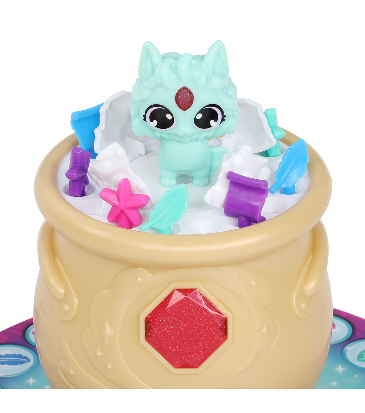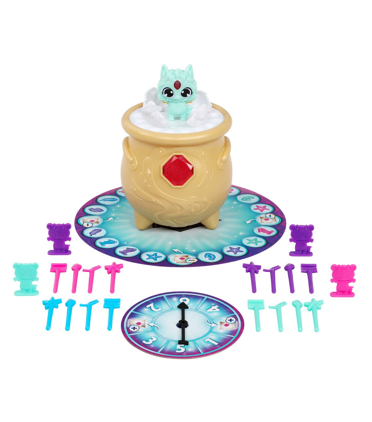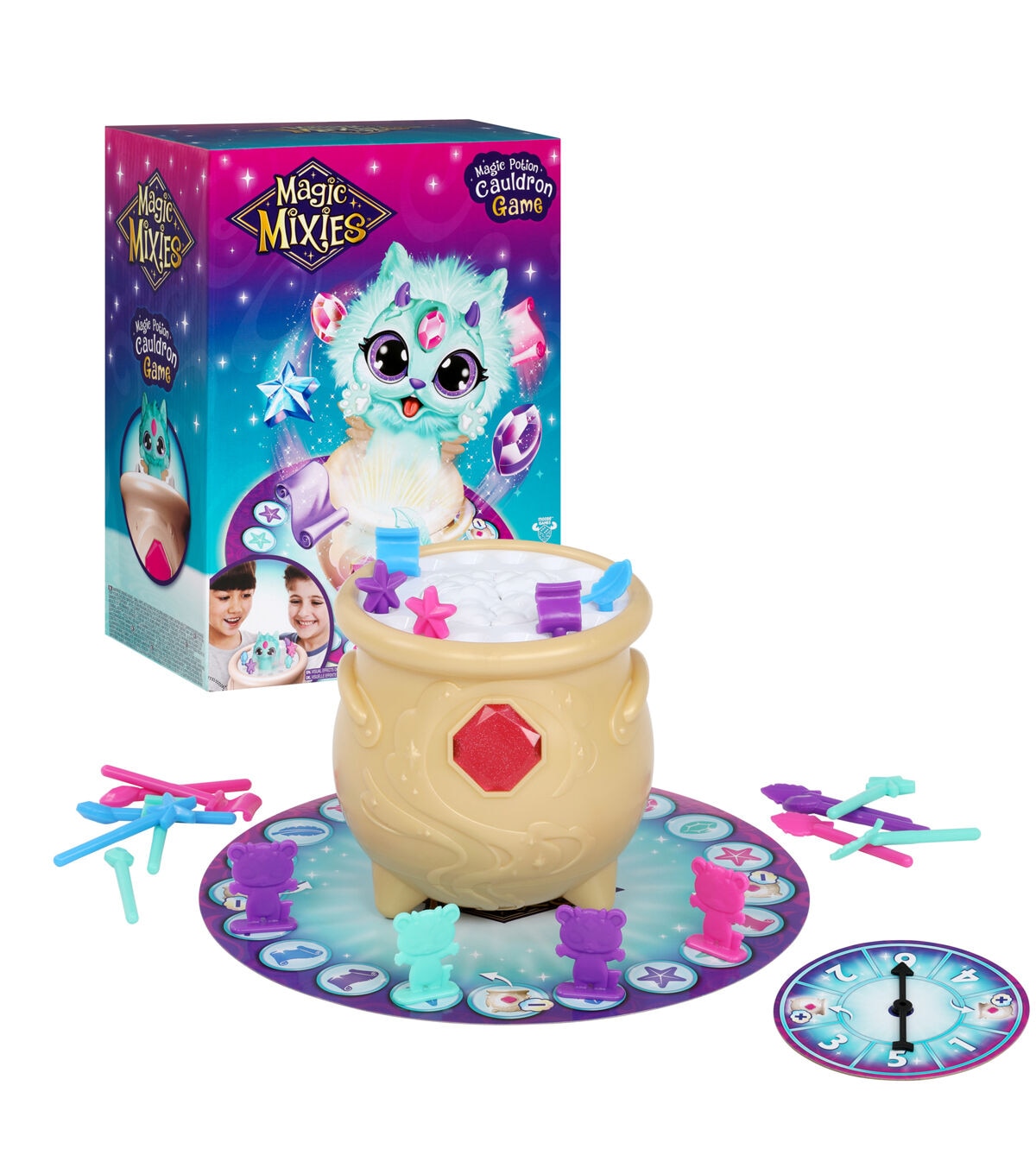 - Includes 1 Cauldron with Magic Mixie, 1 Game Mat, 1 Spinner Board, 16 Potion Ingredients, and 4 Mixling Movers. Ages 4+