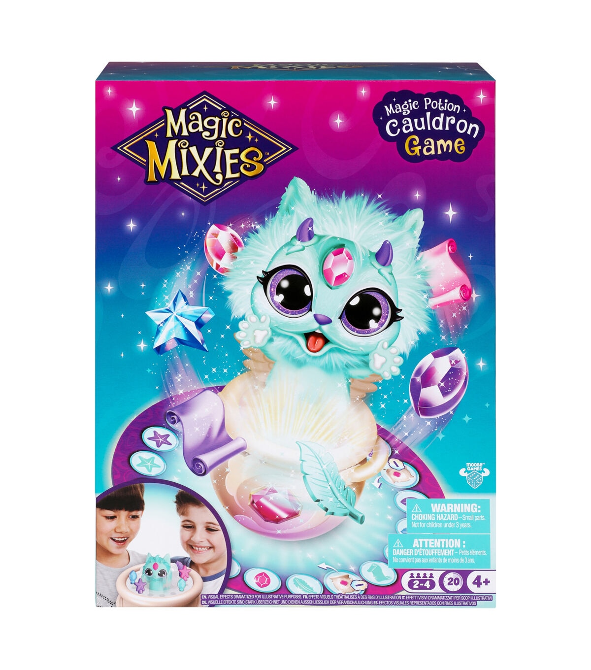 - Easy To Play And Set Up. Created for children from ages 4 and up, the Magic Mixies Potion Game is easy for young kids to play and understand. When the game is finished, it's easy to place the Mixie back down into the Cauldron and reset it so you can play again!