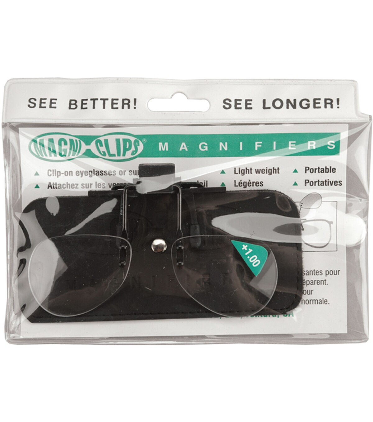 These Magni-Clips Magnifiers extend your crafting time by giving tired eyes a lift. Position clip over your eye (for a bifocal effect). Rubber pads prevent damage to eyeglasses.Electronics must be returned with a receipt and in an unopened box. Please work directly with the manufacturer if products are damaged upon purchase, or become defective within the warranty period.