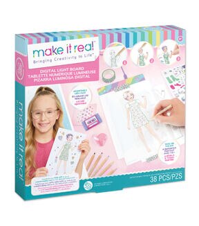 Attention budding fashion designers! This light weight, portable light-up drawing pad makes learning drawing skills, blending colors, matching patterns, and creating looks easier than ever. The light board includes an adjustable LED light for easy tracing. Simply tap until the desired brightness. Take on the go for fun anywhere! Includes a tracing tablet, micro-USB/5V charging cord, 5 pencil crayons, 1 graphite pencil, 1 sticker sheet, 1 gem sticker sheet, 20 model pages, 4 tracing pages, 1 roll of washi tape, 1 pencil sharpener, and 1 eraser. Simple instructions guide tweens through the creative process. Display stylish designs with the included washi tape once finished. The perfect gift for fashionista tweens wanting to practice their fashion design skills. USB charging block is not included.Contains1 tracing tablet, 1 micro-USB/5V charging cord, 5 pencil crayons, 1 graphite pencil, 1 sticker sheet, 1 gem sticker sheet, 20 model pages, 4 tracing pages, 1 roll of washi tape 5 m (5.5 yd), 1 pencil sharpener, 1 eraser, 1 instruction sheet.