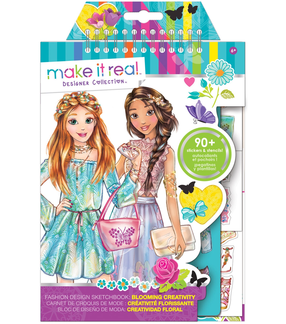 ?Young illustrators and fashion designers can get their start with this one of a kind Make It Real Fashion Design Sketchbook-Blooming Creativity. It’s got everything from stencils and coloring pages to a full design guide and tons of accessory stickers. This sketchbook includes an eight-page design guide, three pages of instructions, 35 coloring pages, three stencil pages, puffy sticker sheet, foil sticker sheet, regular sticker sheet and photo filter acetate.