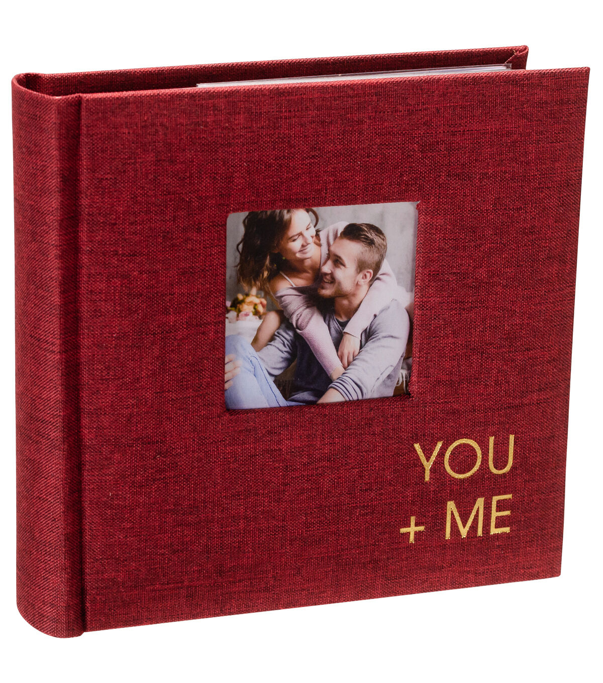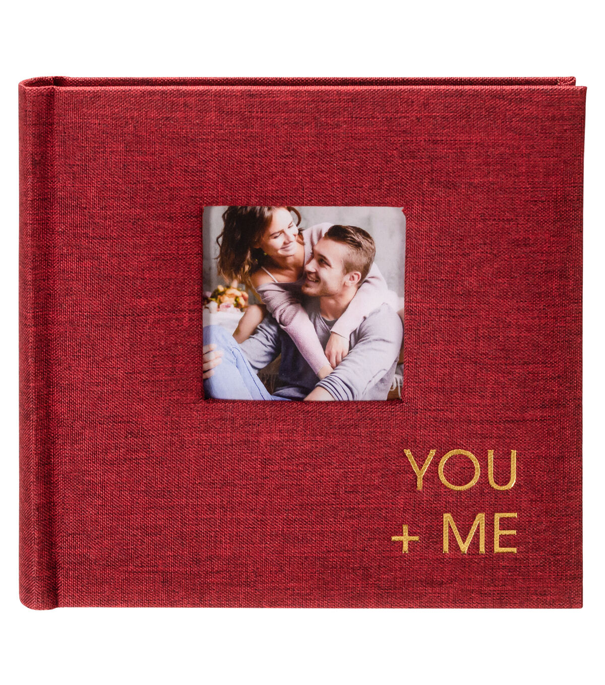 This stylish 1 Up book-bound album is an attractive way to organize and display your favorite photos. Create written captions next to your photos within the memo writing space included on every page. This photo album is covered with a tightly woven fabric in a beautiful shade of deep red, with the title You + Me embossed in a gold metallic modern font. Highlight a favorite photo by loading it into the photo pocket just behind the front cover. The 2.5" x 2.5" opening displays a 3" x 3" photograph perfectly. With a capacity of up to 80 vertical 4" x 6" photographs, this album is sure to meet your archival needs. Acid-free pages protect your treasured photos from fading or discoloration. This fabric album is guaranteed to add new life to your space at just the right size to display on a coffee table or shelf. Photo albums make a thoughtful gift no matter the occasion. Preserve and protect your favorite moments with Malden International Designs' 1 Up You + Me Fabric Picture Album.
