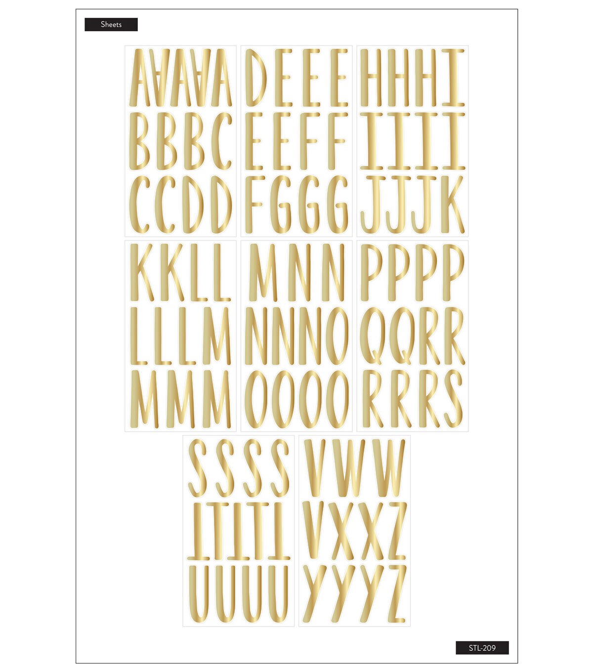 Put a fabulous gold spin on any of your belongings with the Mambi Sticks Leah Gold Foil stickers! With 8 sheets of bold colored letters the personalization possibilities are endless!