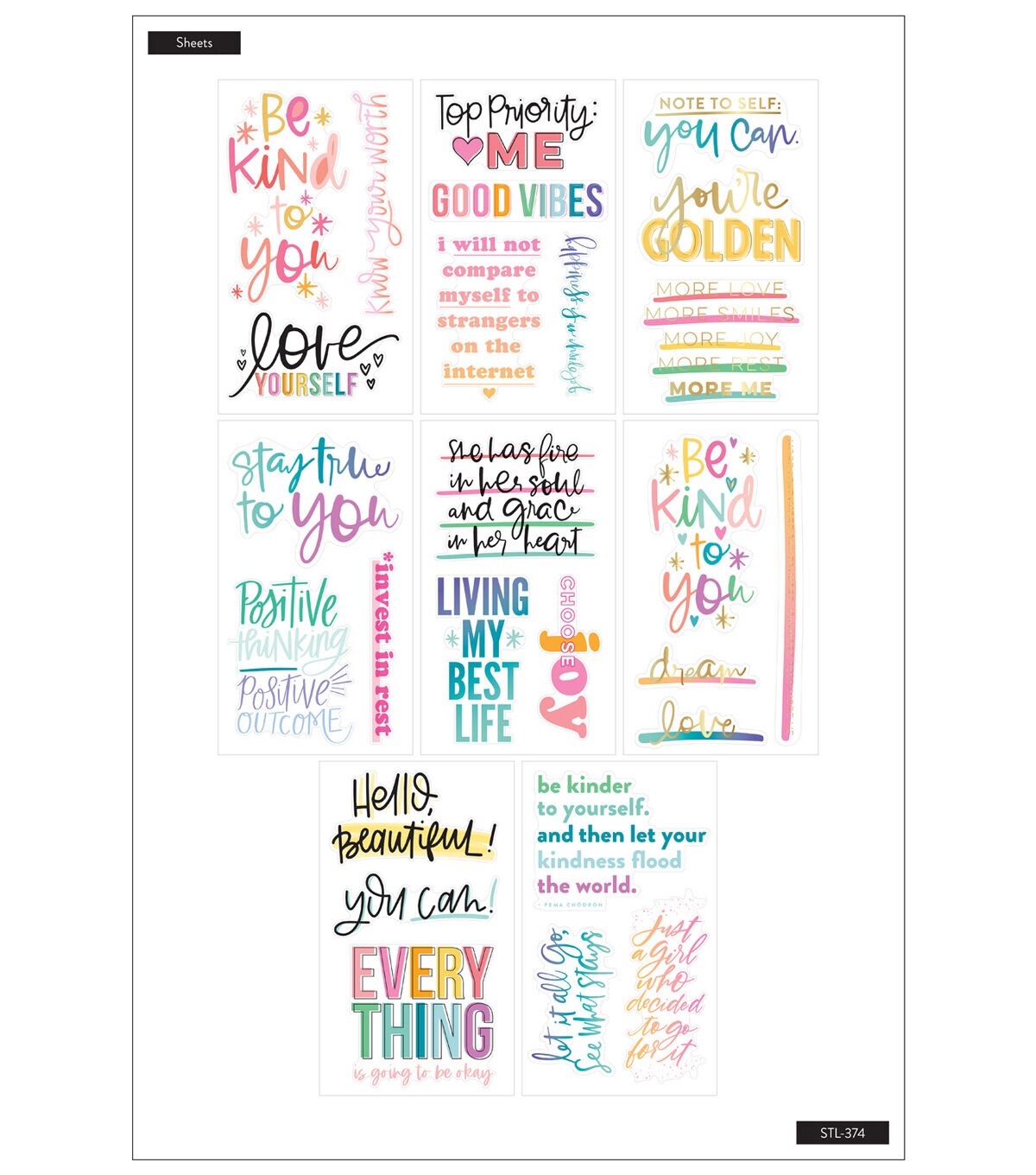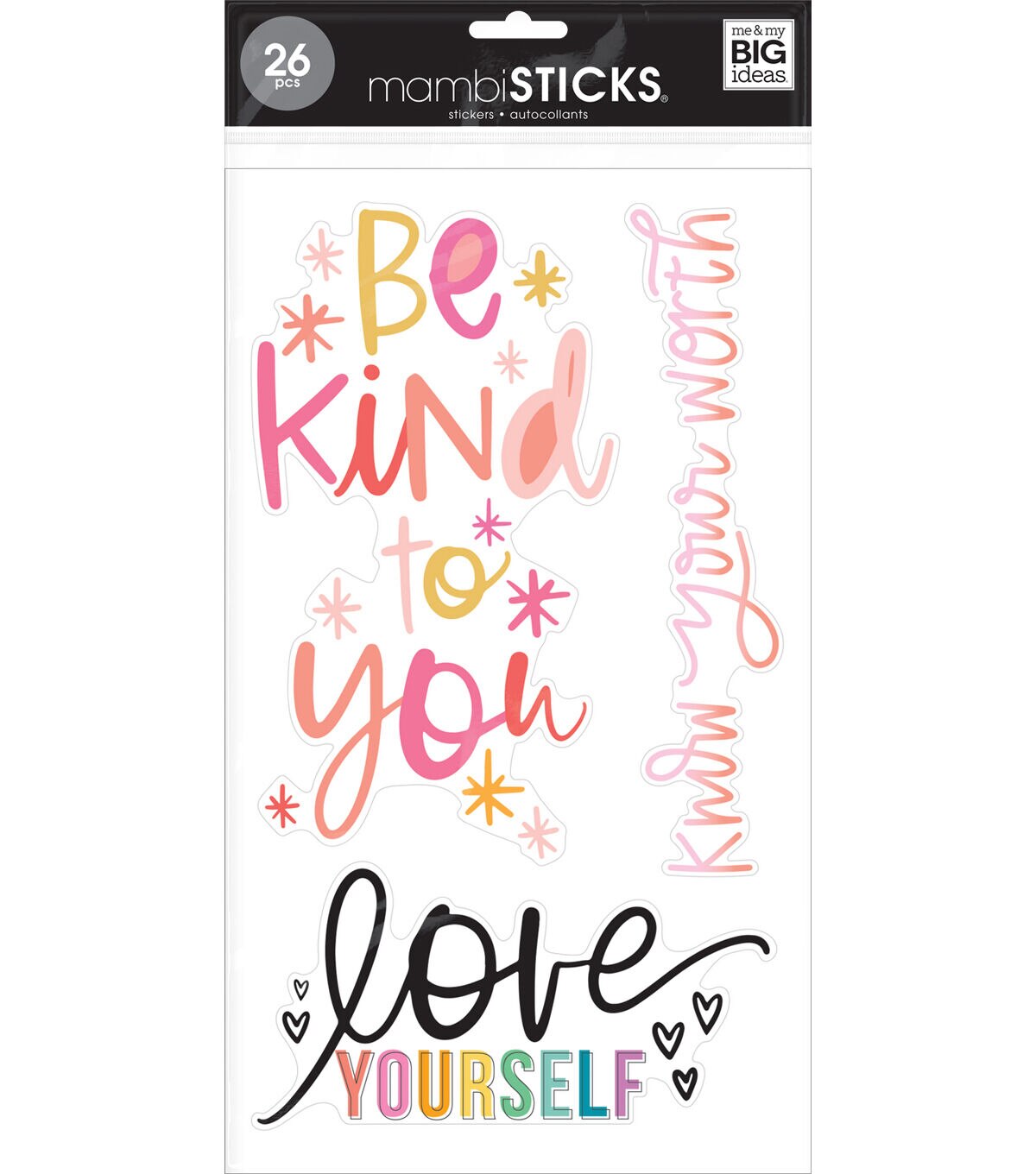 The Mambi Sticks Self Love stickers will add some confident boosting words and affirmations to your personal belongings. Add a touch of color and lift your soul wherever you stick them!