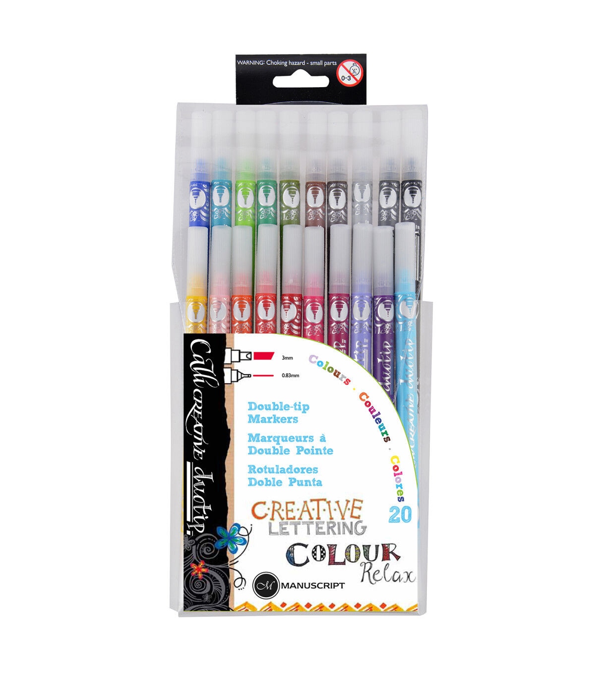Duotips marker sets include vibrant colored markers housed in a handy wallet, perfect for creative writing, lettering, coloring and doodling. This set includes markers with a chisel tip on one end and fineline on the other in black, gray, pale gray, brown, light brown, dark green, olive green, light green, dark turquoise, dark blue, light blue, dark purple, lilac, dark pink, bright pink, dark red, bright red, orange, yellow and flesh pink.