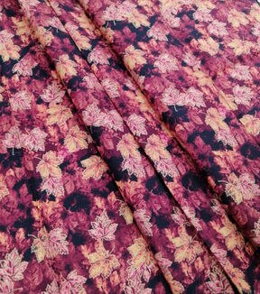 Elevate your home decor with the Maroon Leaves Blender Metallic Cotton Fabric. This fabric is perfect for creating stunning curtains, pillow covers, and other home decor items that will add a touch of elegance to any room. The maroon leaves design is complemented by metallic accents that add a subtle shimmer to the fabric, making it perfect for special occasions or everyday use.