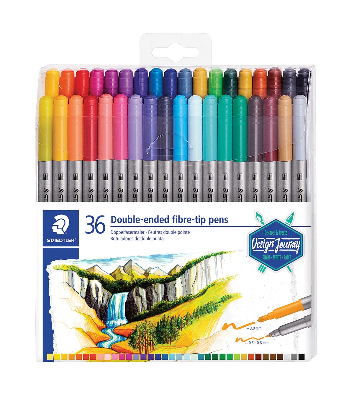 These Staedtler Double-Ended Fibre Tip Pens have both a broad and narrow tip, so you won't have to change pens as often. The tips are chiseled to ensure precise results, with the broad tip producing lines 3.5 mm in width, and the narrow tip producing lines of 2 mm in width.