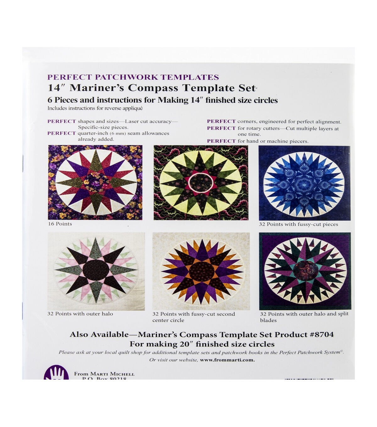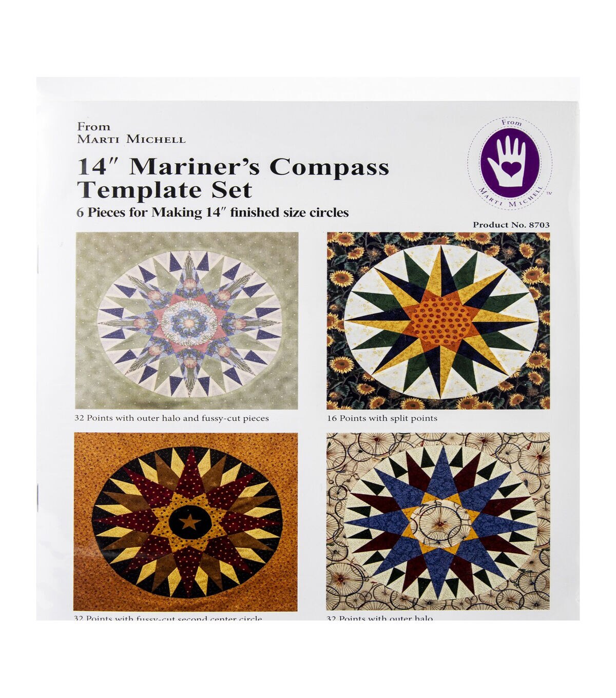 Let the Marti Michell Mariner's Compass Template Set be your guide for all your sewing projects. This pack contains six templates with engineered corners for creating 14-inch circles and an 8.5 x 11-inch step-by-step instructions booklet. You can also gift this set to a sewing enthusiast in your life.