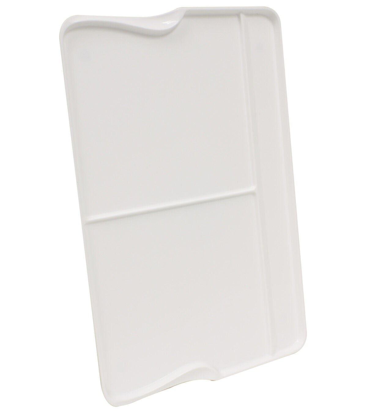 This plastic palette is ideal for oil or acrylic painting serves as a flat and reliable surface that will not bow. Acrylic colors peel off and oil colors wipe off clean. A slight lip to prevents paint from migrating off the edges.