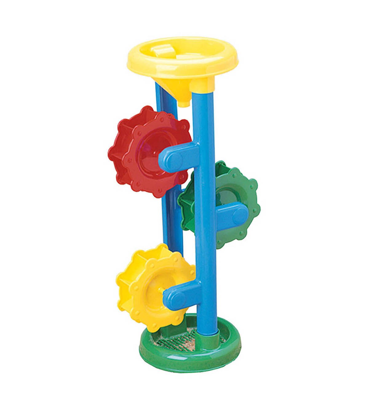 Swirling down the cylinder and through the three, spinning wheels makes an adventure out of sand and water play for any child.