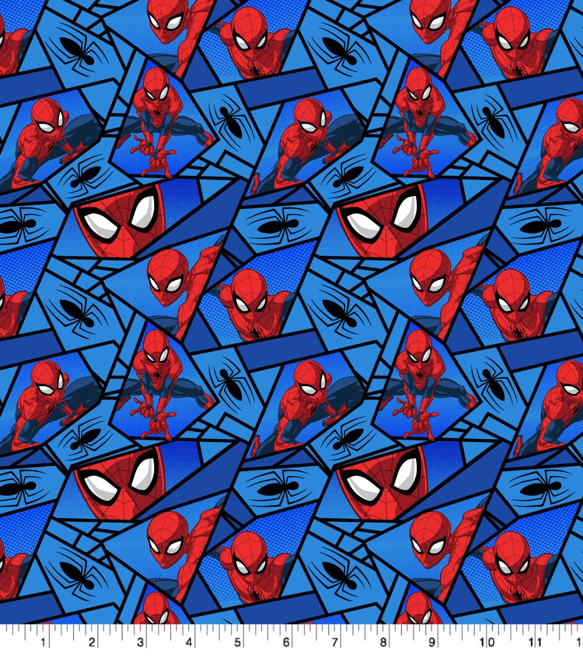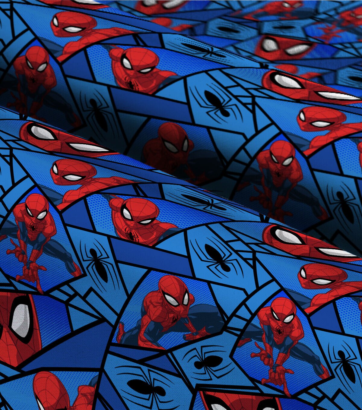 Get Caught in the Web of Marvel Spider Man Geometric on Blue Cotton Fabric