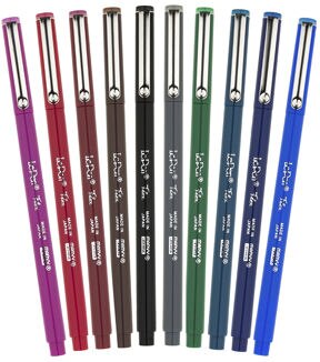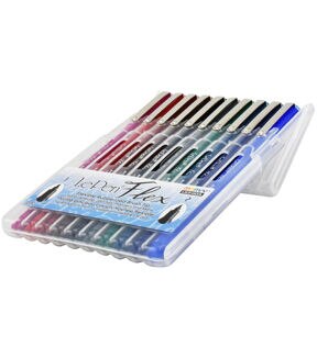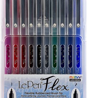 Uchida Le Pen Flex Pen Durable, flexible rubberized brush tip is great for hand lettering, journals, planners, and much more. This 4x0.5x6 inch package contains ten pens (magenta, red, burgundy, brown, black, dark grey, green, teal, navy, and blue). Imported.