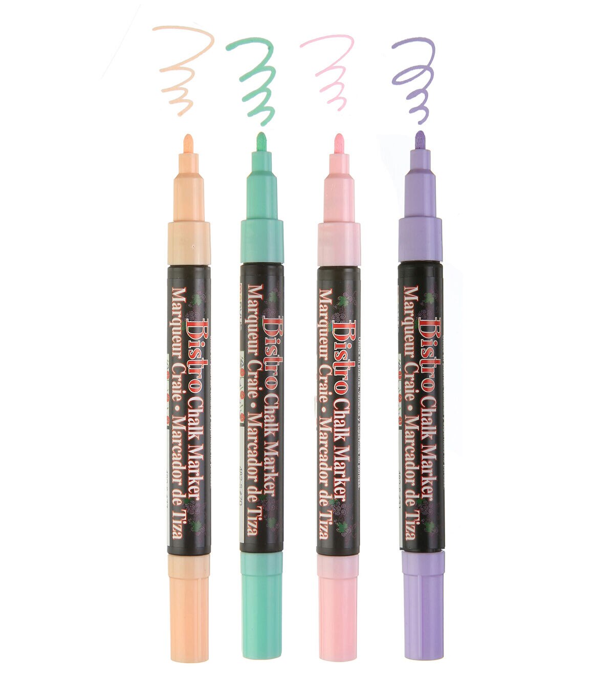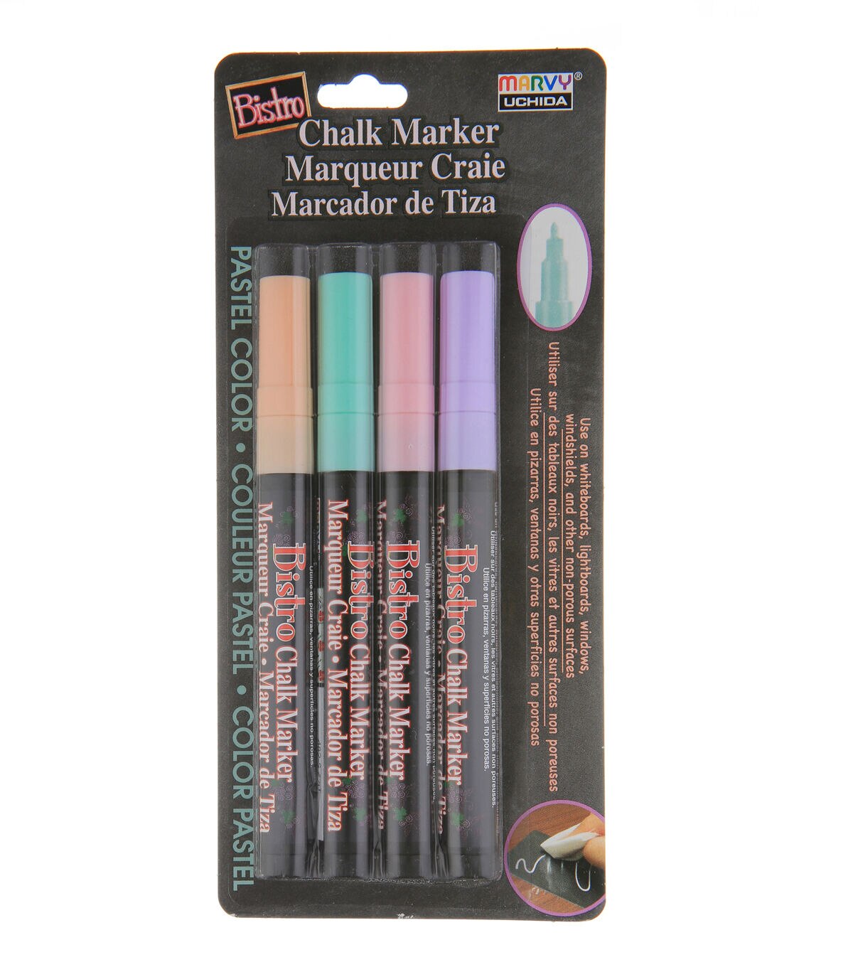 Bistro Chalk Markers are the perfect every day chalk marker. These chalk markers work on chalkboards, dry erase boards, light boards, windows, windshields, and other non-porous surfaces. These markers are opaque, water-based, and pigmented. Clean up is super easy, they are erasable with a damp cloth.