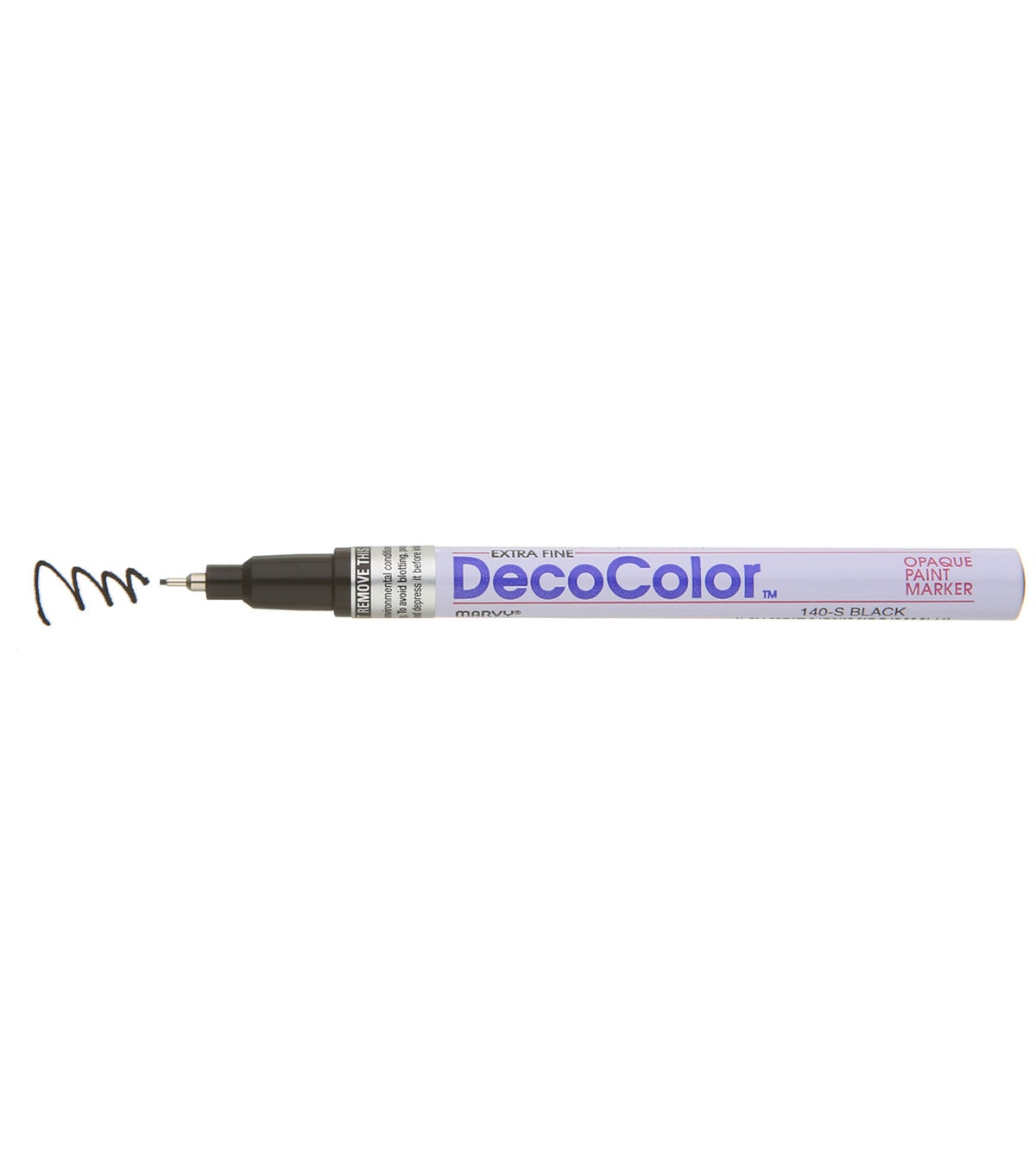 Add layers of depth and detail to your writing and drawings using the Marvy Uchida DecoColor Extra Fine Opaque Paint Marker-Black. Light-fast and opaque, this black paint marker is perfect for use on a variety of surfaces. You can seamlessly use it on papers, porcelain, stone, wood, clay and more. Lead-free and acid-free, it's safe for all your paper and craft projects.