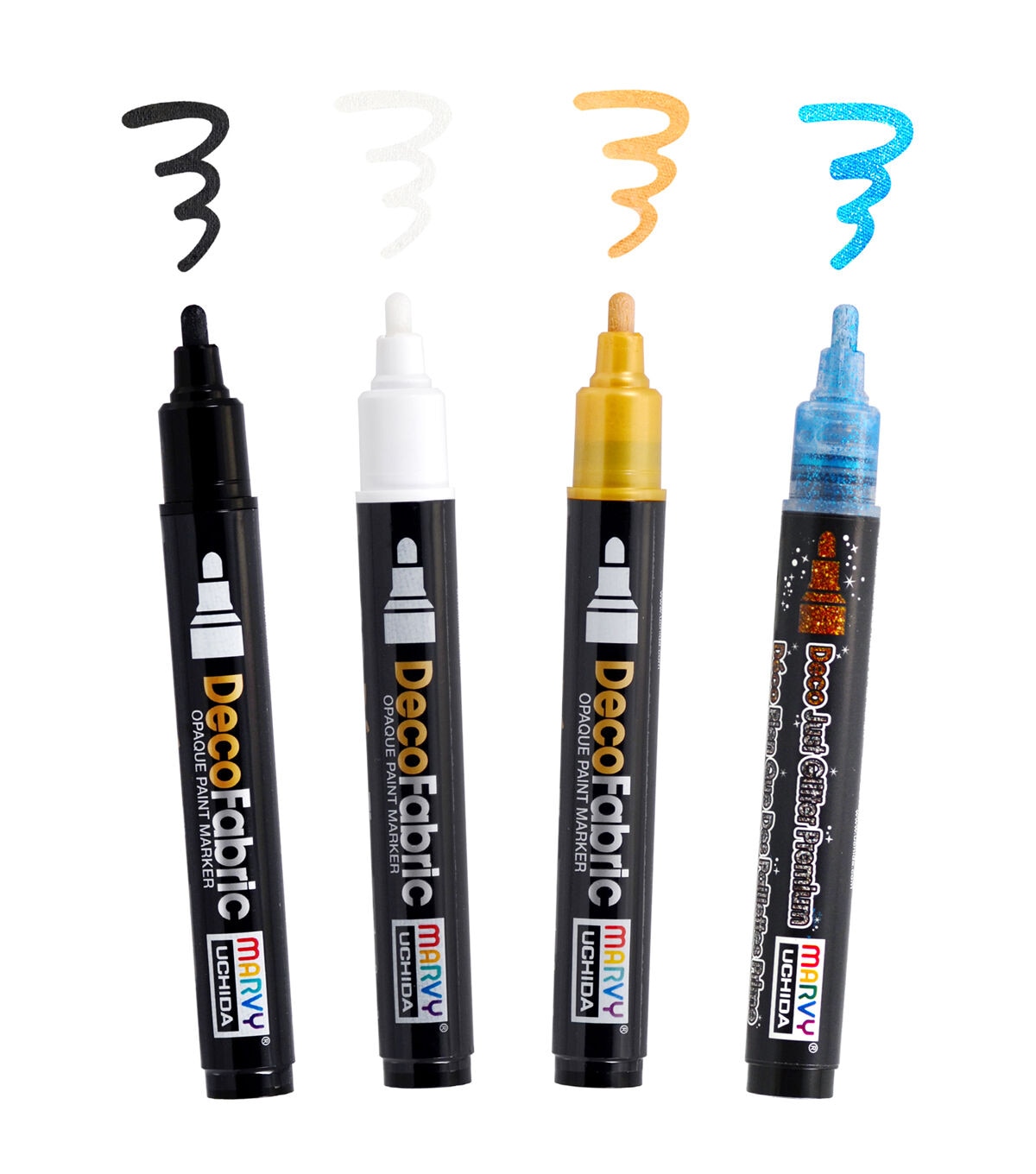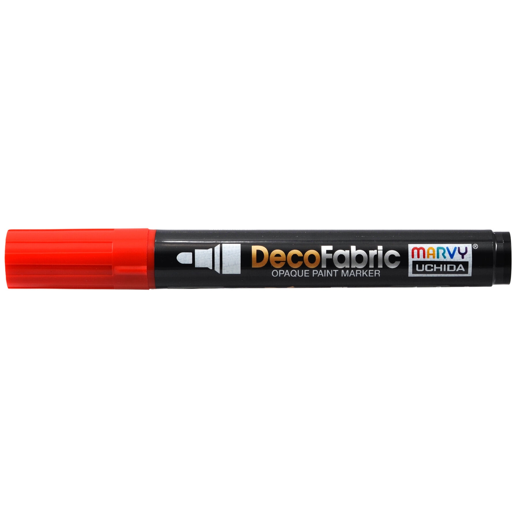 Marvy Uchida Medium Tip Pigmented Fabric Paint Marker Black-DecoFabric markers are the ideal tool for fabric use. These are the best fabric markers for making gifts, costumes, and personalized attire. DecoFabric markers have a fine point tip giving you the ability to add detail to your creation. Heat setting with an iron is recommended. Fabric marker is acid-free, non-toxic, odorless and lightfast.