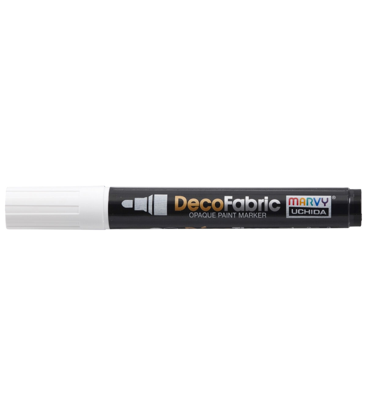 Marvy Uchida Medium Tip Pigmented Fabric Paint Marker Black-DecoFabric markers are the ideal tool for fabric use. These are the best fabric markers for making gifts, costumes, and personalized attire. DecoFabric markers have a fine point tip giving you the ability to add detail to your creation. Heat setting with an iron is recommended. Fabric marker is acid-free, non-toxic, odorless and lightfast.