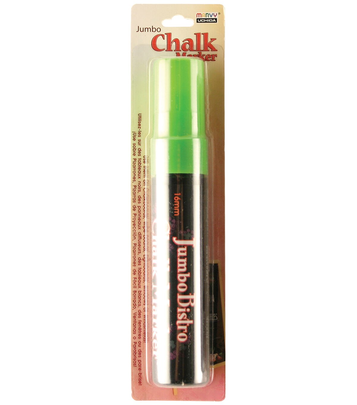 UCHIDA-Bistro Jumbo Chalk Marker. Make an eye-catching display and watch them brighten-up under a UV light. Also great for outdoor applications, chalkboards, wipe-boards, lightboards and windows. These markers are pigmented, non-toxic, xylene-free, waterbased, acid free, lead free and lightfast. This package contains one jumbo marker. Available in a variety of colors: each sold separately. Imported.