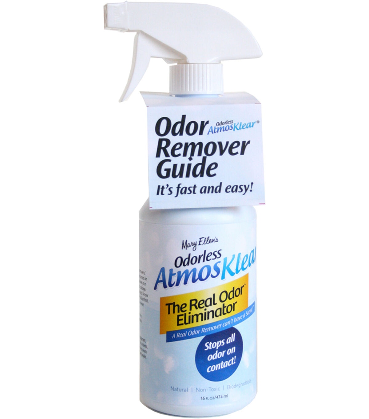 Mary Ellen Products-AtmosKlear Odor Eliminator. This spray is tough on odors, but gentle on the environment! Removes odor on contact. This package contains one 16oz spray bottle of odor eliminator. Non-toxic. Made in USA.
