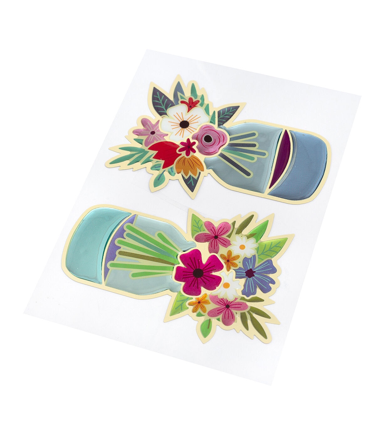 - INCLUDES: 2 floral mason jar epoxy stickers