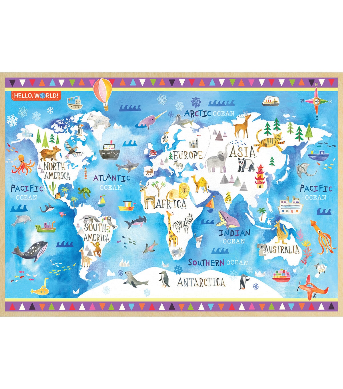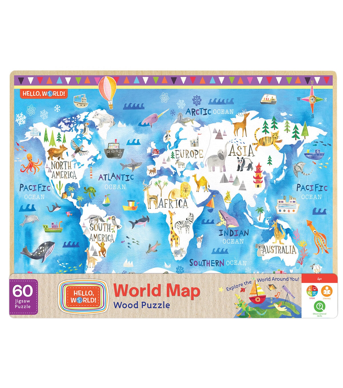 - Explore the World with this wood puzzle. Beautifully illustrated image of the world with Continents and Oceans identified