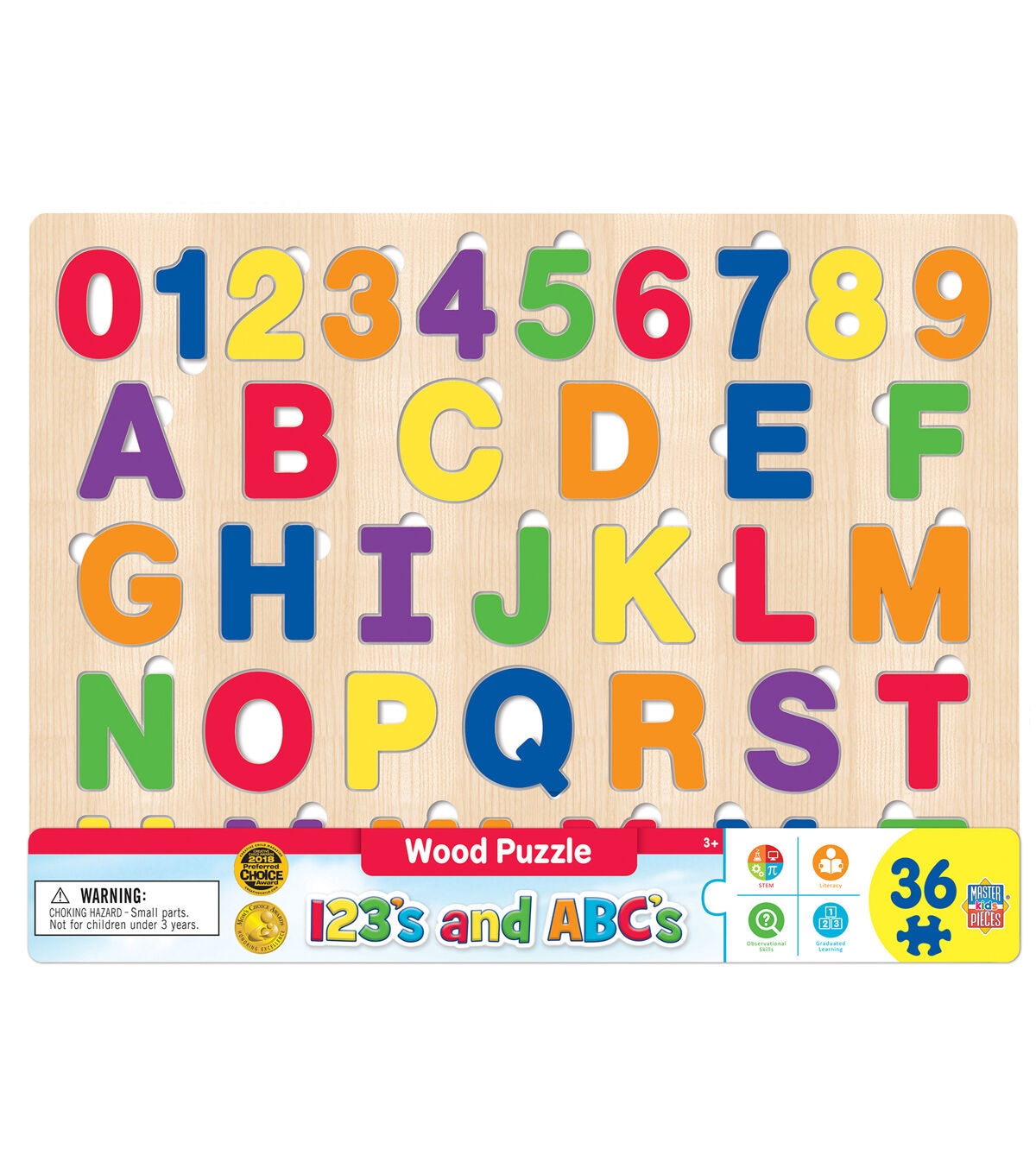 MasterPieces 16.5" x 12" Wood ABC's & 123's Jigsaw Puzzle 44pc