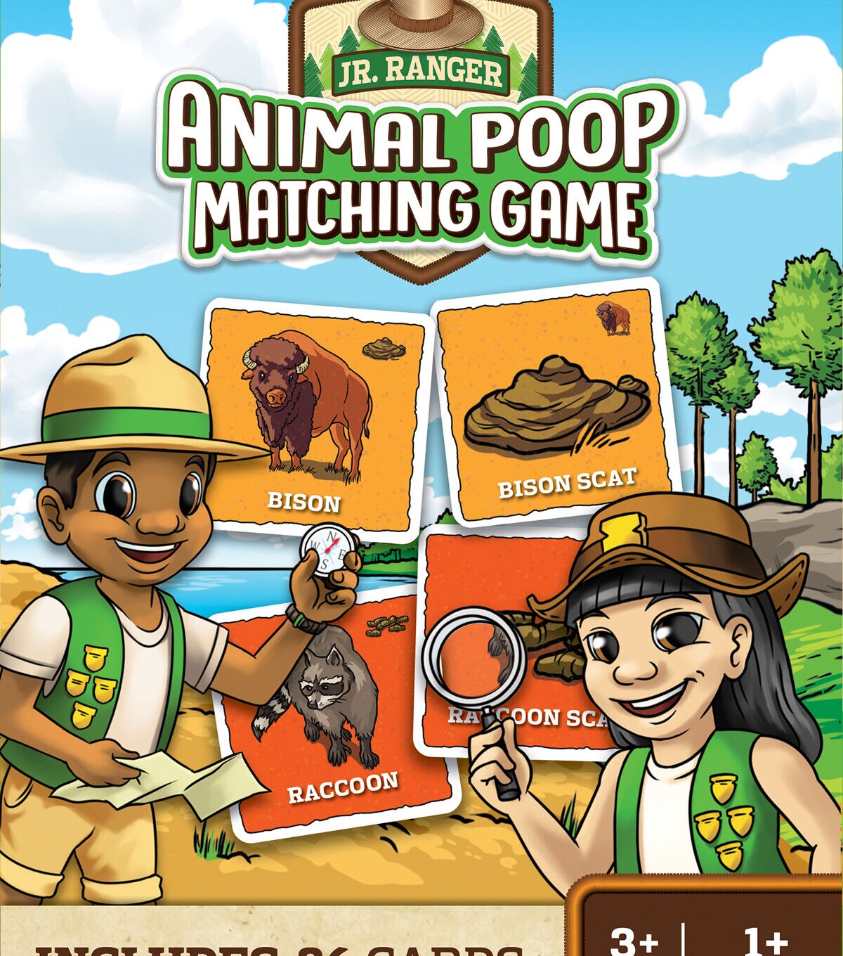 Enjoy family game night with this Jr. Ranger Animal Poop matching game by MasterPieces. This game includes 18 animals and their poop. Challenge your memory and have fun trying to match up the animal to their droppings. Collect the most matches by the end of the game, and you win!