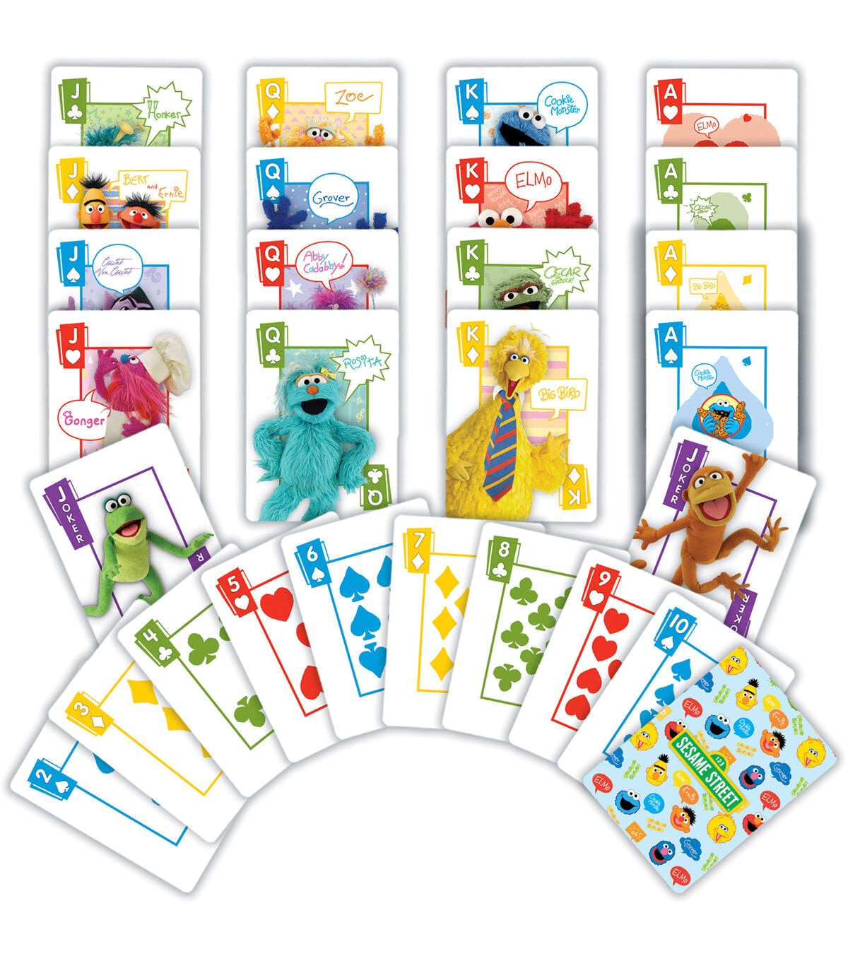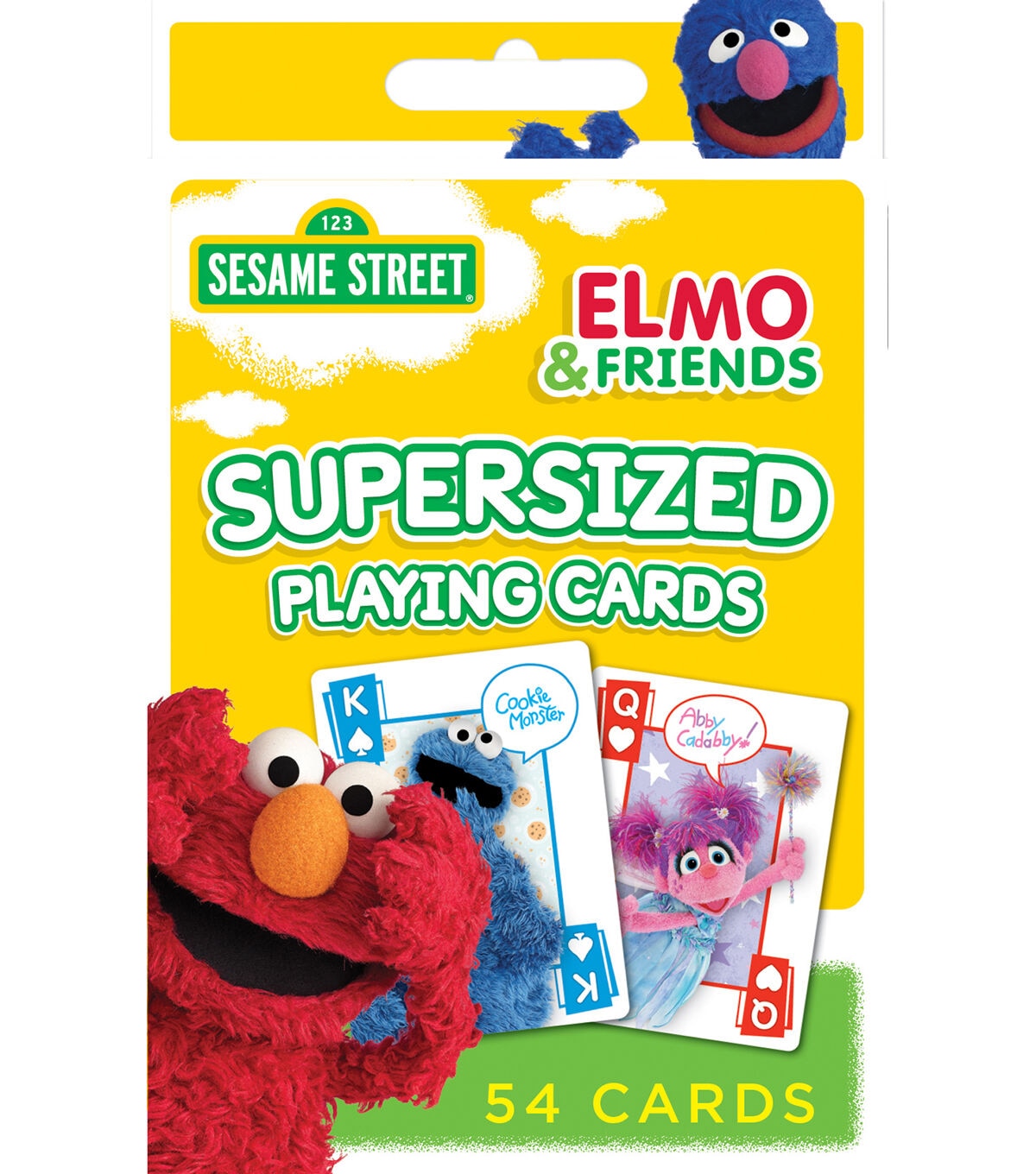 Sesame Street Elmo & Friends Supersized Playing Cards by MasterPieces are the perfect deck for friends and families to share in on the fun. Each standard deck contains 52 cards and 2 jokers. The bright and playful feature Elmo and his furry, silly, loveable friends. Kids will love the colorful suits and each Muppet's special autograph. The deck also includes instructions for games like Go-Fish, Crazy-Eights, War, and more. Enjoy your favorite Sesame Street episodes, then keep the fun going with this classic style card game!
