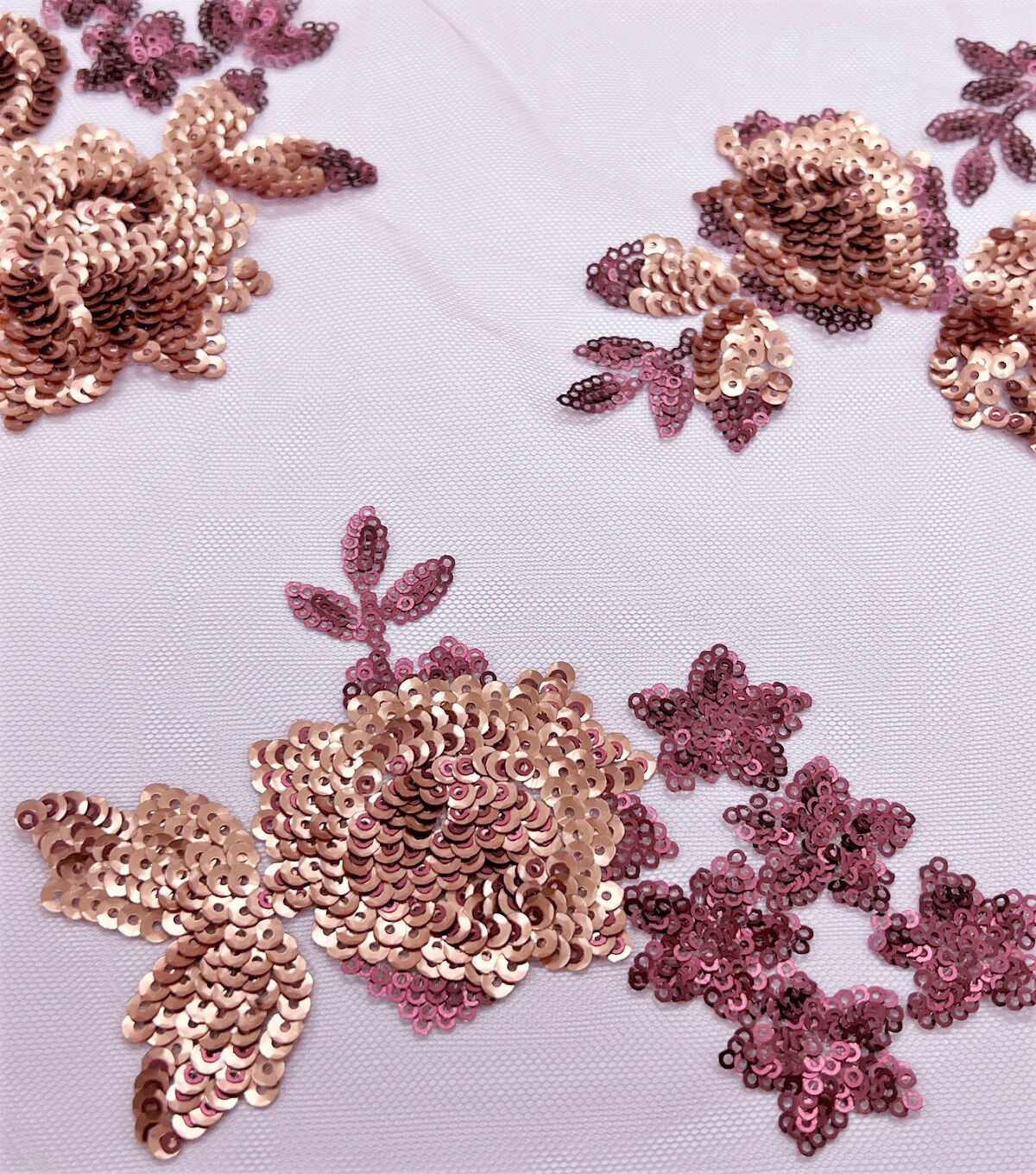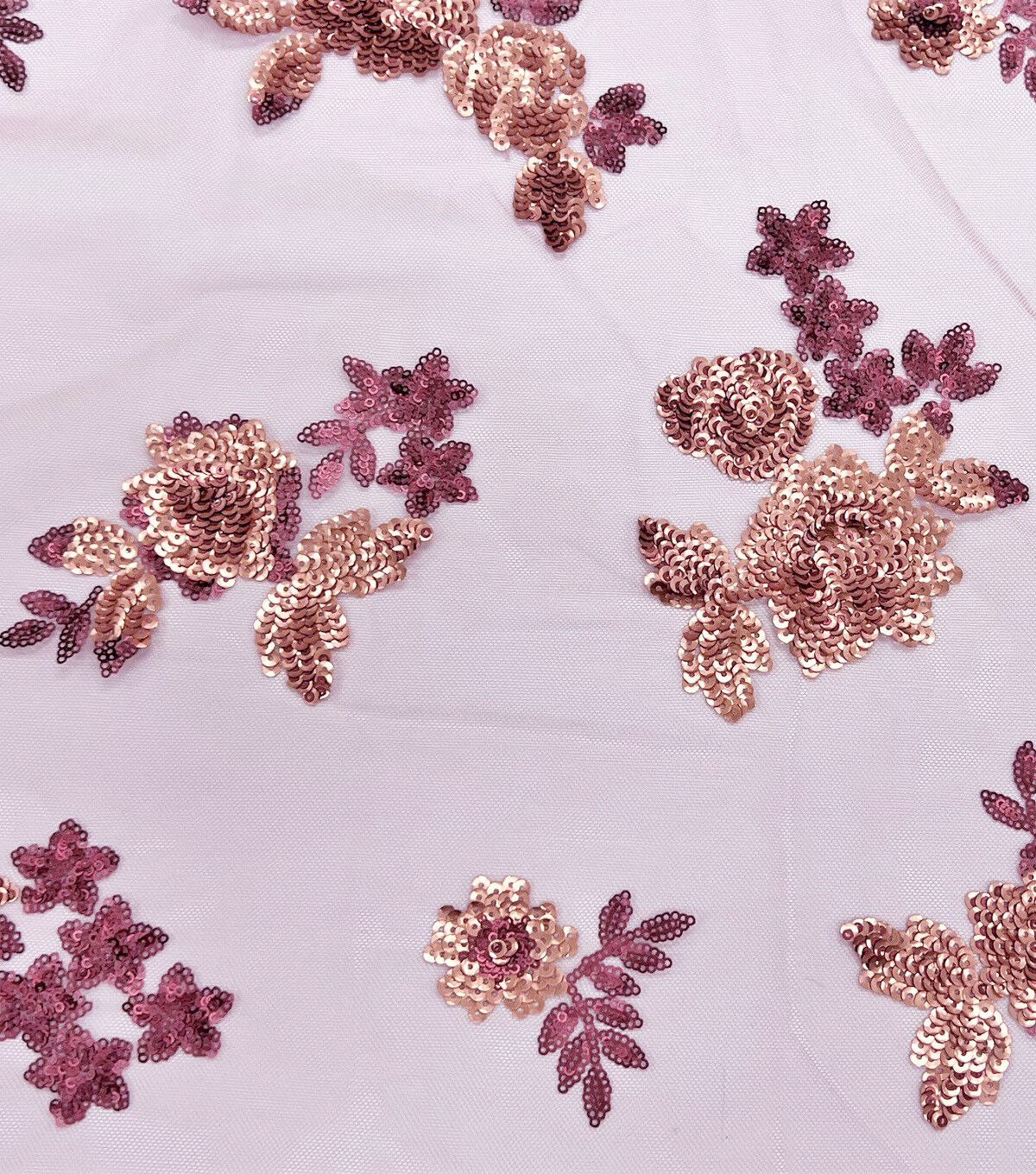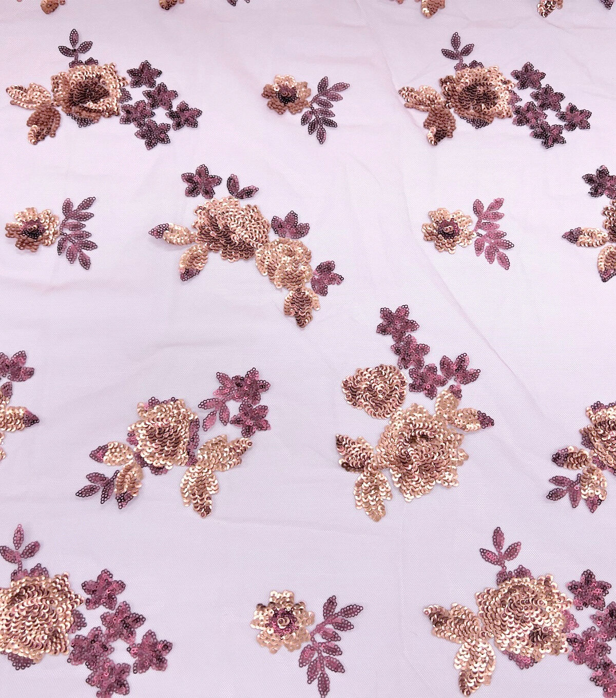 Matte Floral Sequin Mesh Pink Fabric