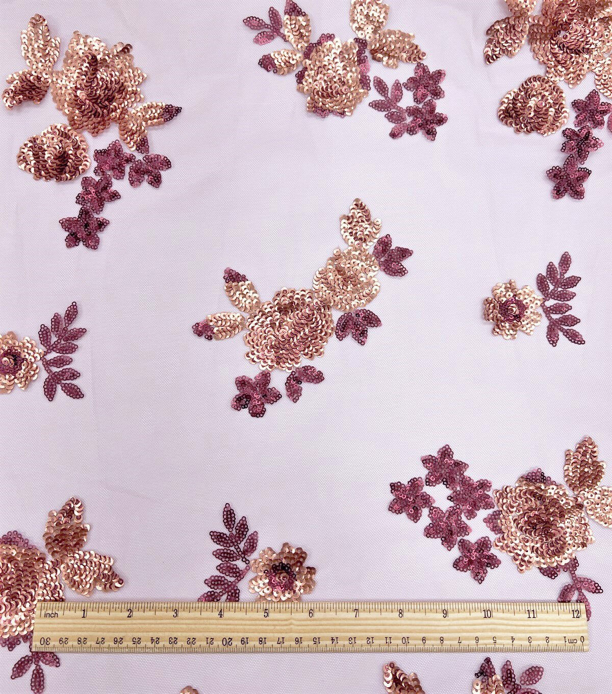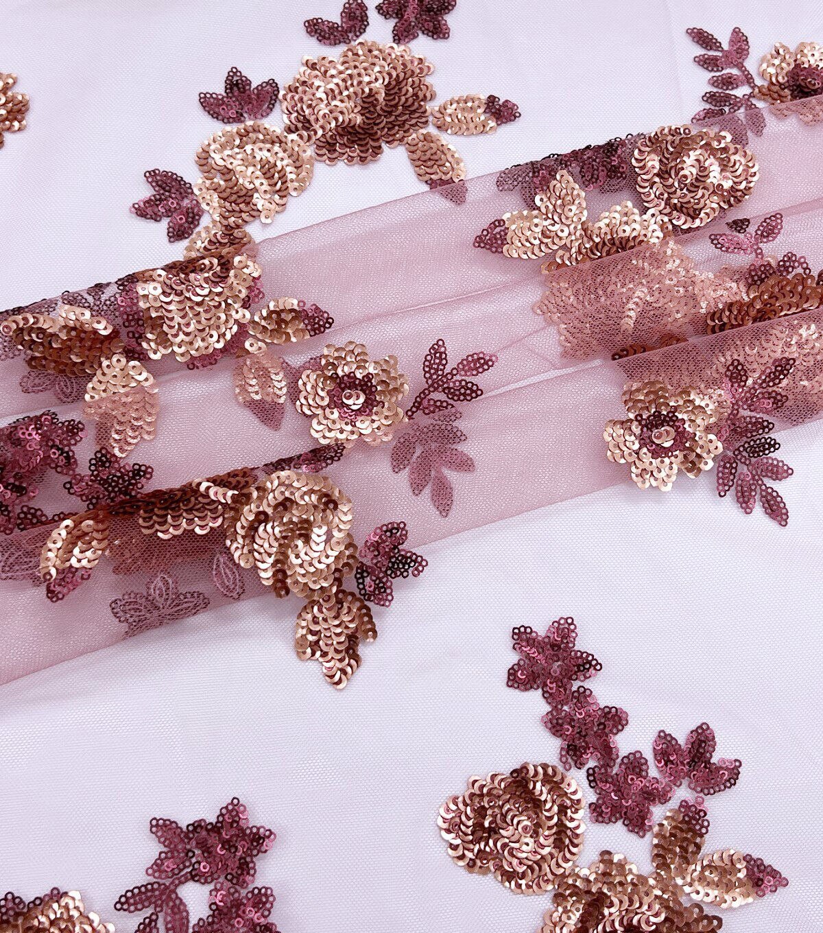 • Matte Floral Sequin Mesh Pink Fabric
