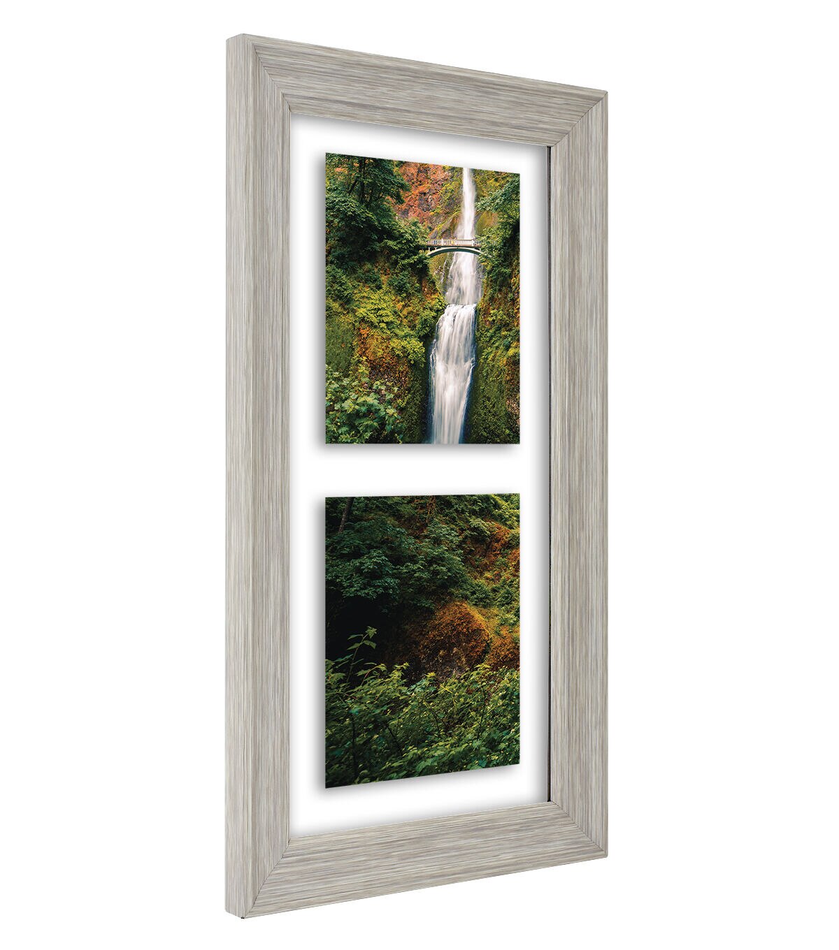 Highlight and display cherished photos in this Float Collage Frame. This unique frame is simple and contemporary with rustic flair. The collage frame with three openings is made of clear glass with a barn wood border for understated elegance. It can be hung vertically or horizontally, and is ideal for 5 x 7-inch photographs.