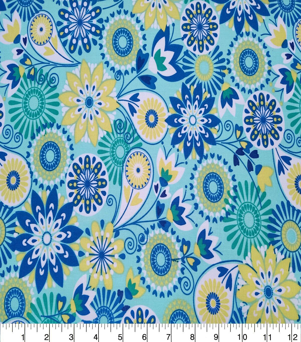 Medallion & Floral on Green Quilt Cotton Fabric by Quilter's Showcase